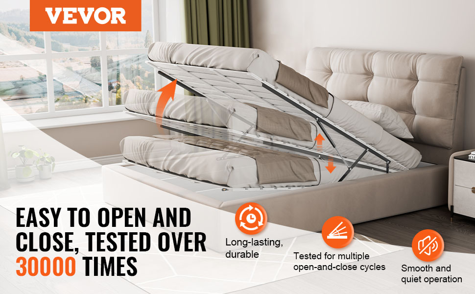 Úložný výťah postele je vyrobený z vysokokvalitnej tvrdej ocele, ktorá unesie až 132 kg na jednej strane, čo zaručuje výnimočnú odolnosť bez uvoľňovania alebo odierania.