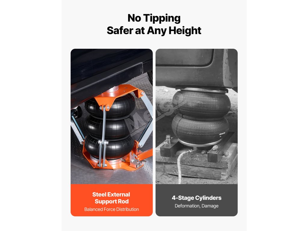 Zdvihák so vzduchovým vakom má širokú základňu, ktorá zväčšuje kontaktnú plochu so zemou pre väčšiu stabilitu a menšie kývanie počas zdvíhania.