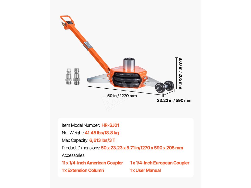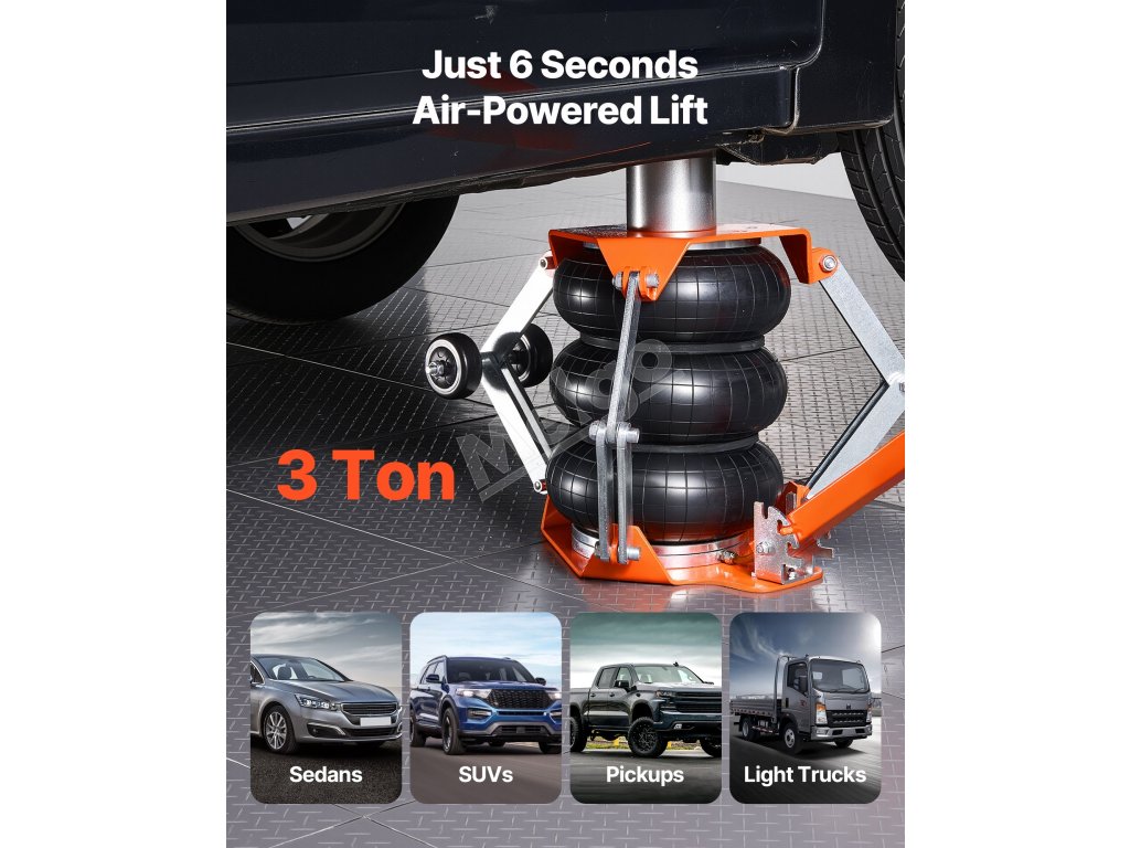 Vzduchový zdvihák 3 t, trojitý vak, zdvih 470 mm, s podperou a rúčkou