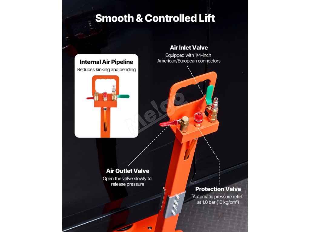 Náš vzduchový zdvihák je vyrobený z vysokokvalitnej ocele s elektrostatickým práškovým náterom, ktorý zaručuje odolnosť proti korózii a dlhodobé používanie.