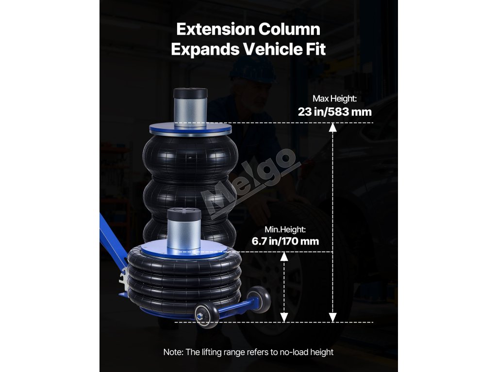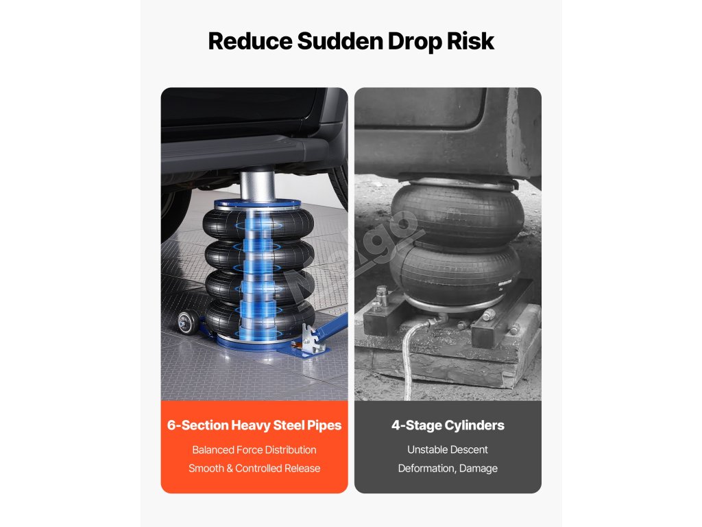 Zdvihák so vzduchovým vakom má širokú základňu, ktorá zväčšuje kontaktnú plochu so zemou pre väčšiu stabilitu a menšie kývanie počas zdvíhania.