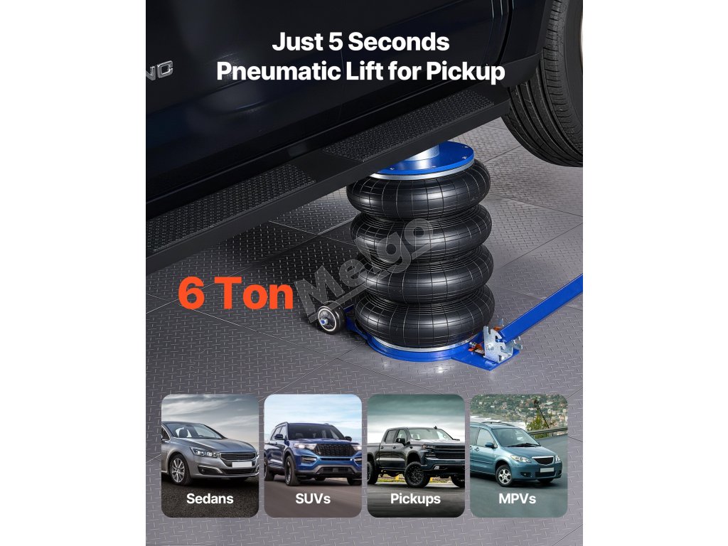 Vzduchový zdvihák má vysokopevnostnú konštrukciu, ktorá poskytuje pevnú oporu pre ťažké vozidlá. Je ideálny pre sedany, SUV a ďalšie vozidlá a zakaždým zaručuje bezpečné a stabilné zdvíhanie.
