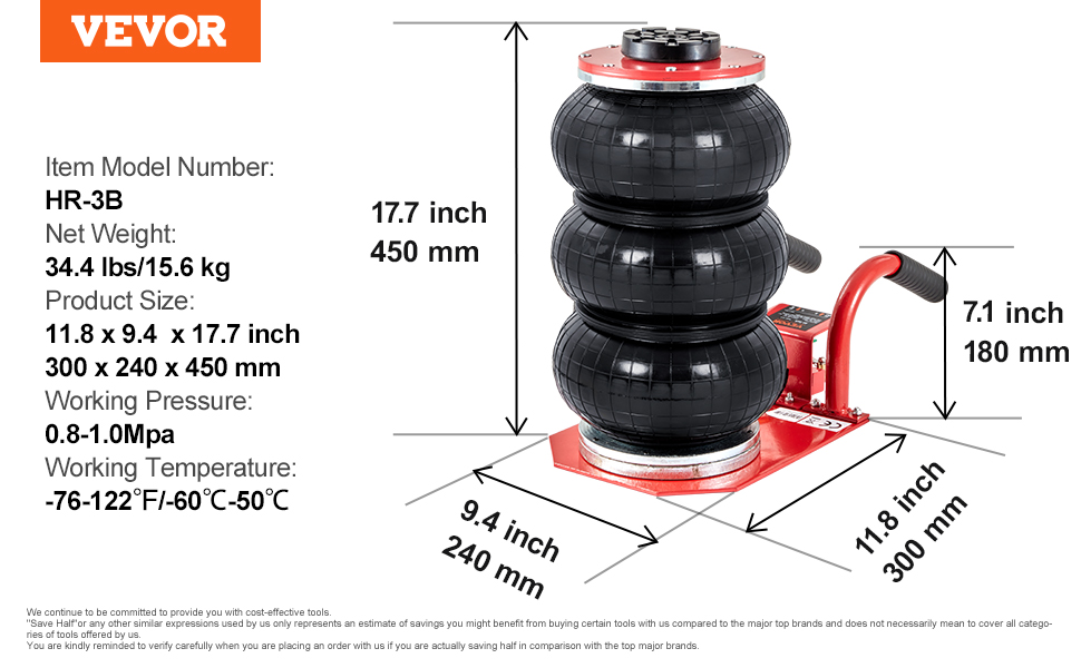 Tento zdvihák s pôsobivou nosnosťou 3 tony si poradí so širokou škálou domácich a úžitkových modelov, od rodinných vozidiel až po SUV. Jeho všestranný rozsah zdvíhania 5,5-17,7 palca sa prispôsobí vozidlám s rôznou výškou, vďaka čomu sú opravy a údržba hračkou.