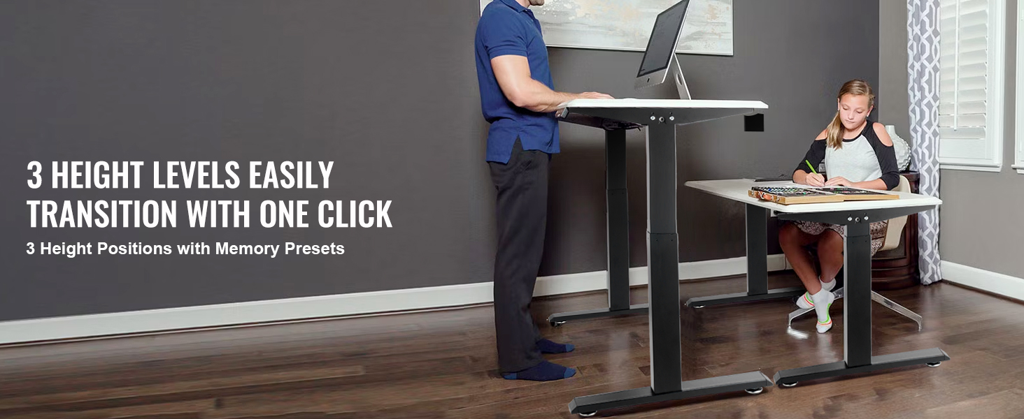 Vybavený funkciou nastavenia výšky do 3 polôh môžete bez námahy prepínať medzi režimami sedenia a státia, čím sa zvýši vaša produktivita. Jeho priestranná konštrukcia pracovnej plochy umožňuje dostatok priestoru pre vaše pracovné náležitosti, čím zabezpečuje pohodlnú prácu v kancelárii.