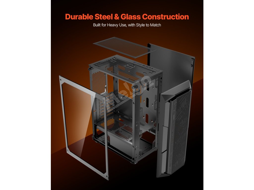 Odpoveď: Puzdro je vyrobené z ocele SPCC so zosilnenými rohmi pre väčšiu ochranu. Jeden bočný panel je vyrobený z tvrdeného skla, ktoré poskytuje približne dvojnásobnú odolnosť voči nárazom v porovnaní s bežnými puzdrami.