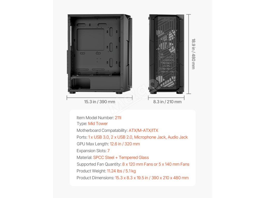 herná počítačová skriňa 211I Mid Tower, navrhnutá pre vášnivých hráčov