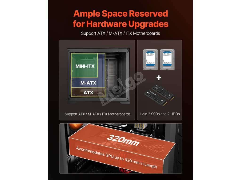 Odpoveď: Áno, podporuje! Táto skriňa je kompatibilná so základnými doskami ATX a podporuje GPU s dĺžkou až 12,6 palca / 320 mm. Poskytuje dostatok vnútorného priestoru, kompatibilného s chladičmi s dĺžkou až 360 mm.