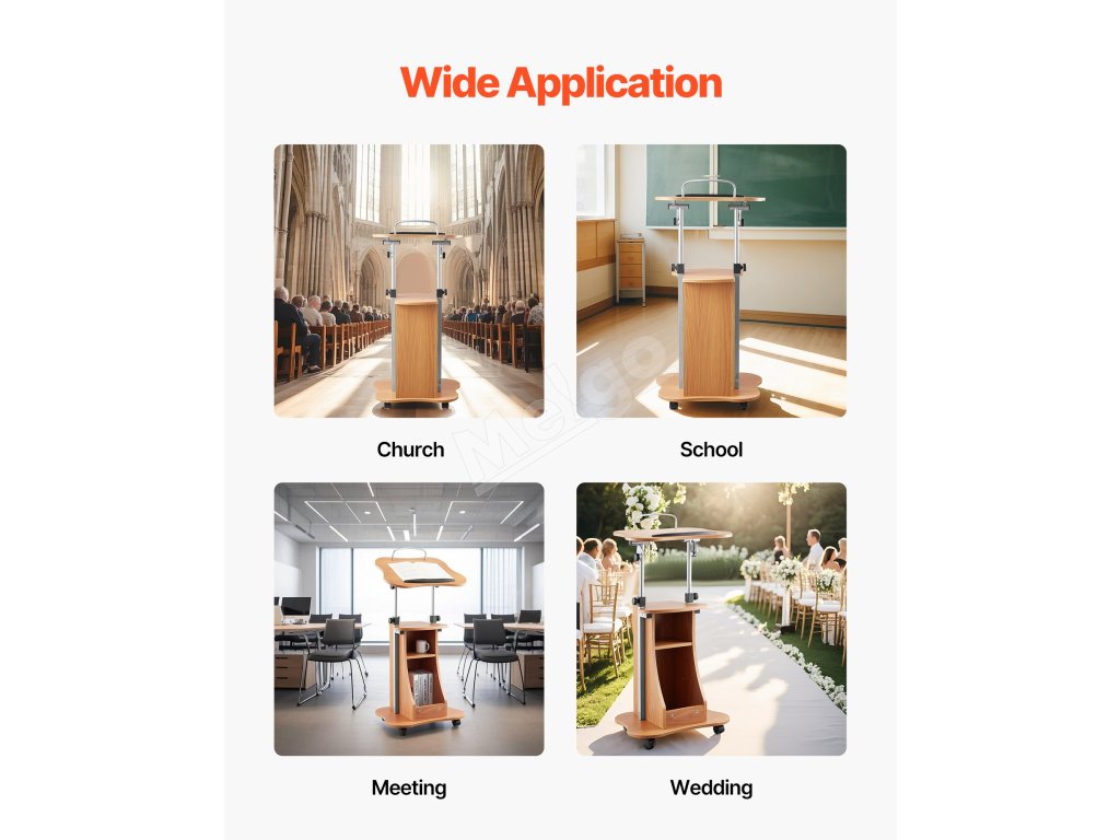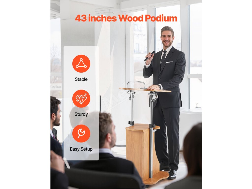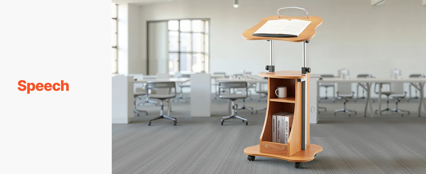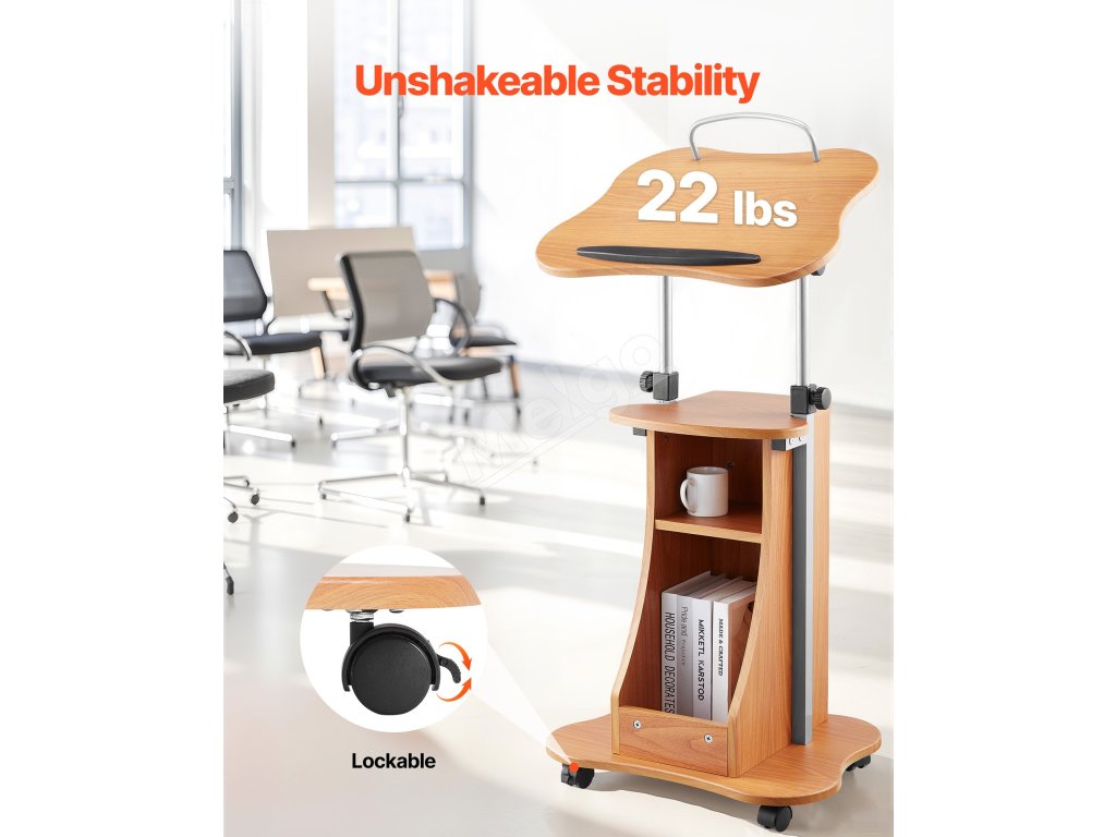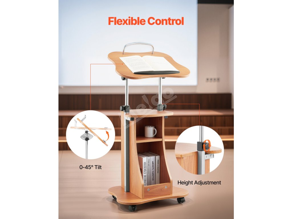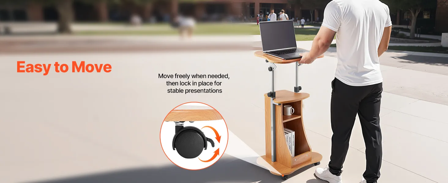 Rečnícky pult, 1100 mm, drevený, nastaviteľná výška a uhol, kolieska