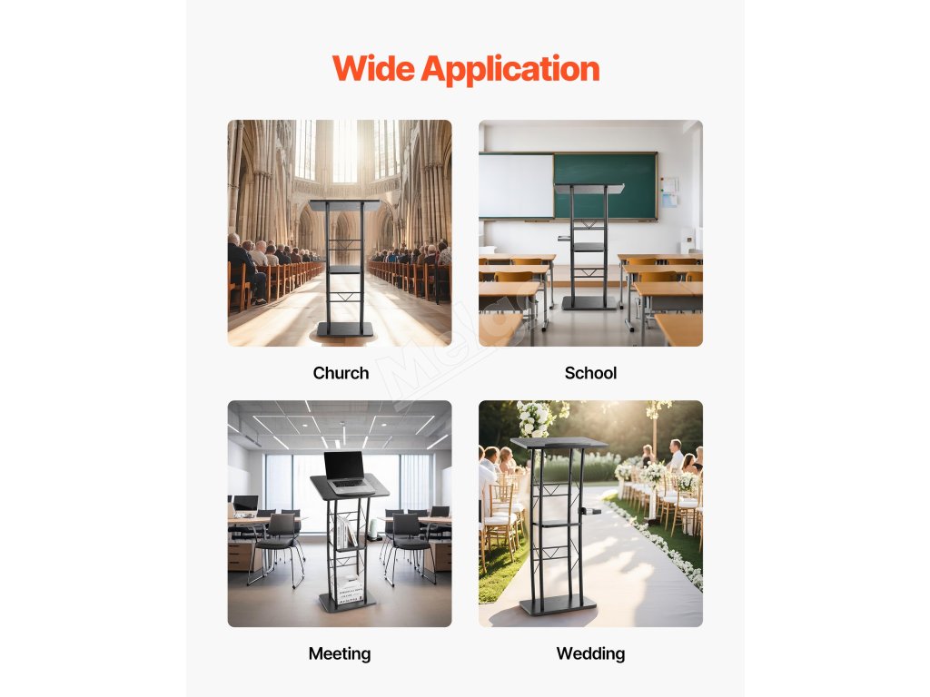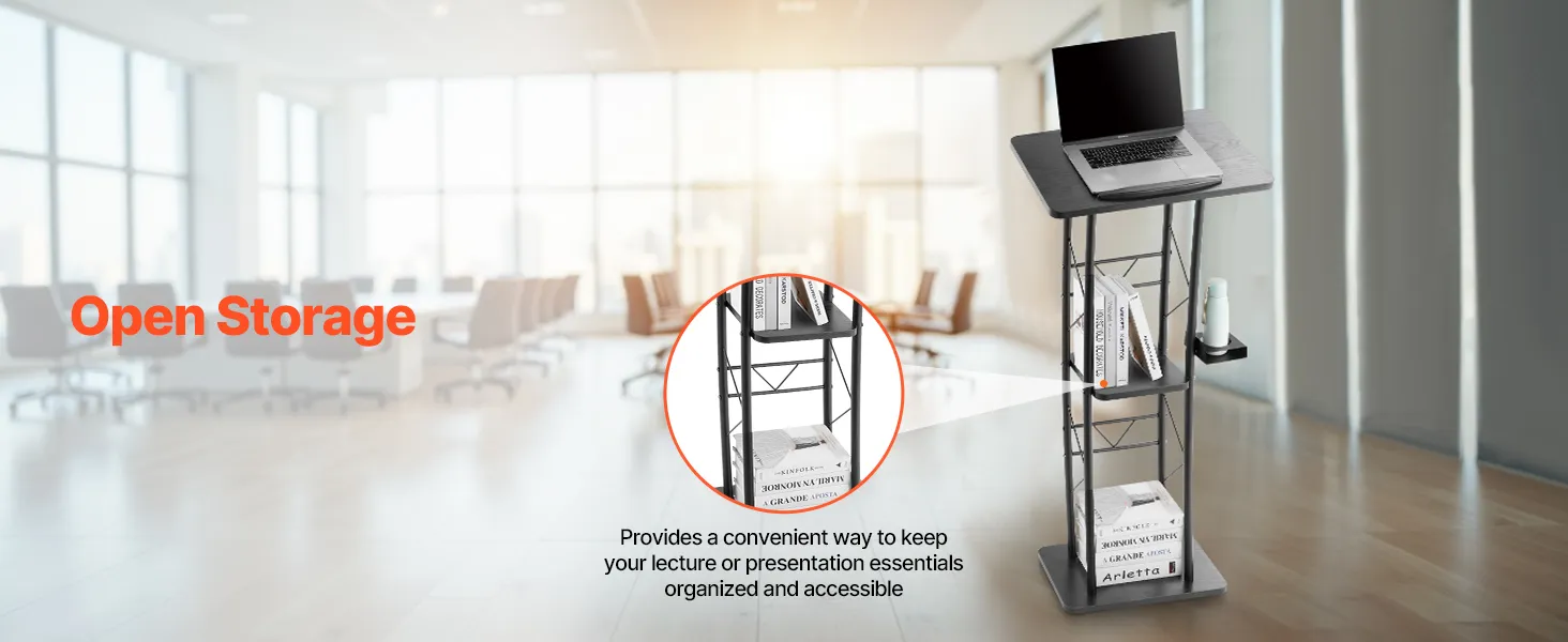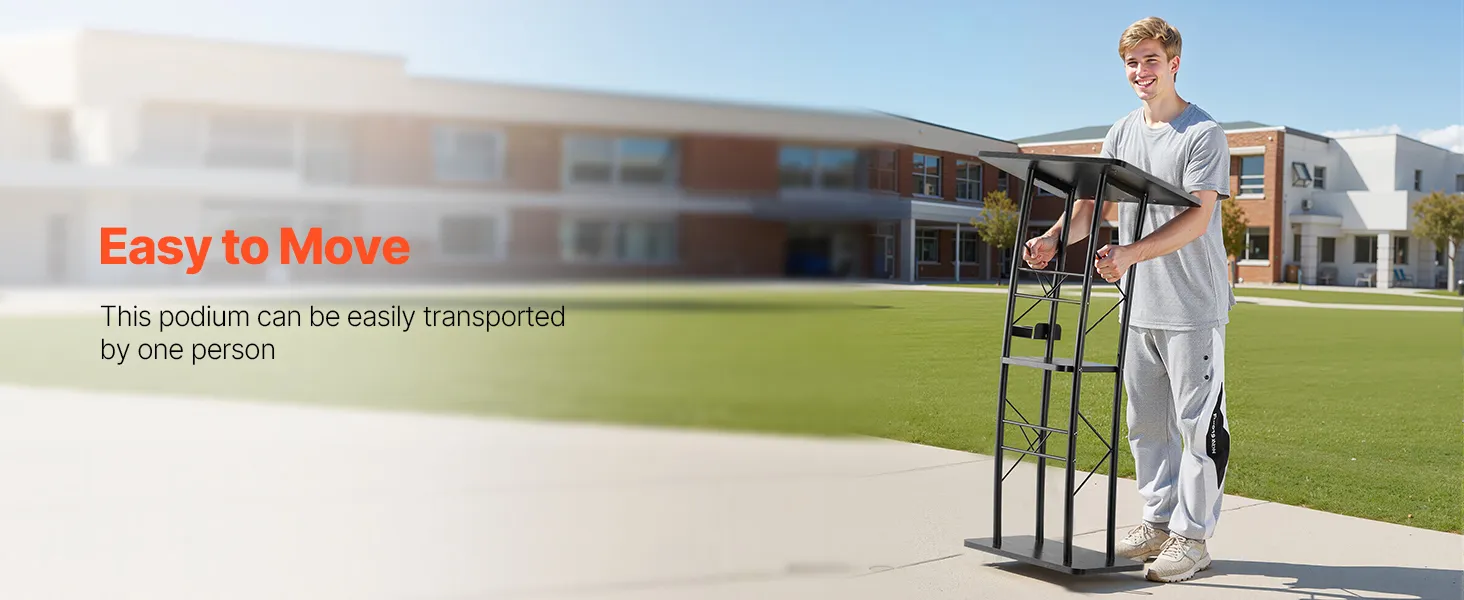 Tento ľahký pódiový stojan je určený na individuálnu prepravu. Vďaka kompaktným rozmerom, vyváženej hmotnosti a odolným materiálom ho možno ľahko zdvihnúť alebo premiestniť bez náradia alebo pomoci, čo je vhodné pre pedagógov alebo rečníkov, ktorí potrebujú častú mobilitu.