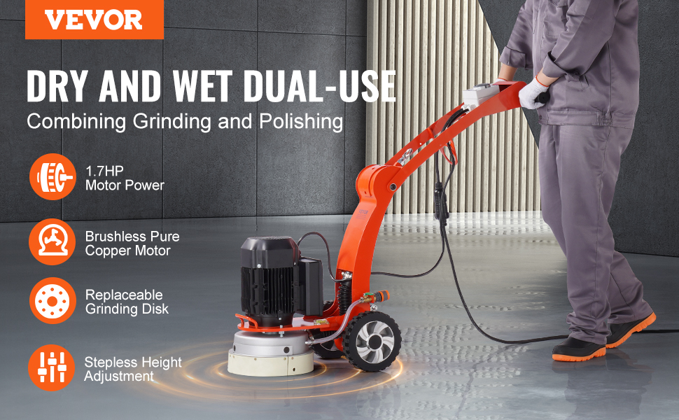 VEVOR Tools - Váš odborný spoločník! Naša brúska na betón poskytuje správny výkon a ovládanie pre rôzne povrchy. Je to najlepšia voľba na brúsenie podláh. Táto brúska si poradí so všetkým - od komerčného až po priemyselné použitie.