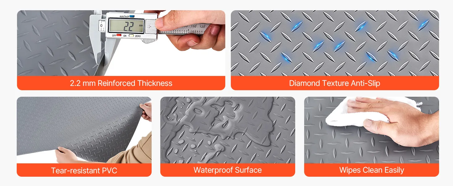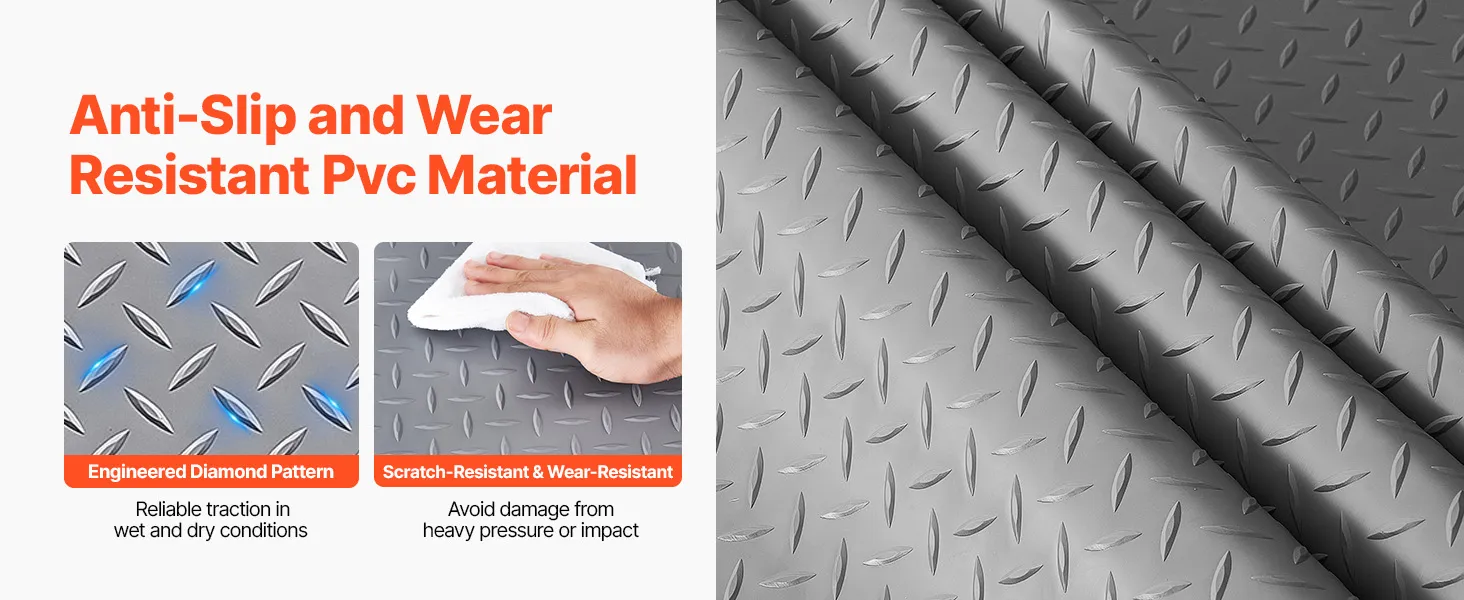 Vyberte si rolovú podlahovú krytinu do garáže pre spoľahlivú ochranu odolnú proti tlaku, protišmykovú ochranu a ochranu proti opotrebovaniu. Jej vodoodolný povrch sa ľahko čistí a veľké pokrytie sa hodí pre väčšinu vozidiel alebo poskytuje odpruženú plochu v skladoch.