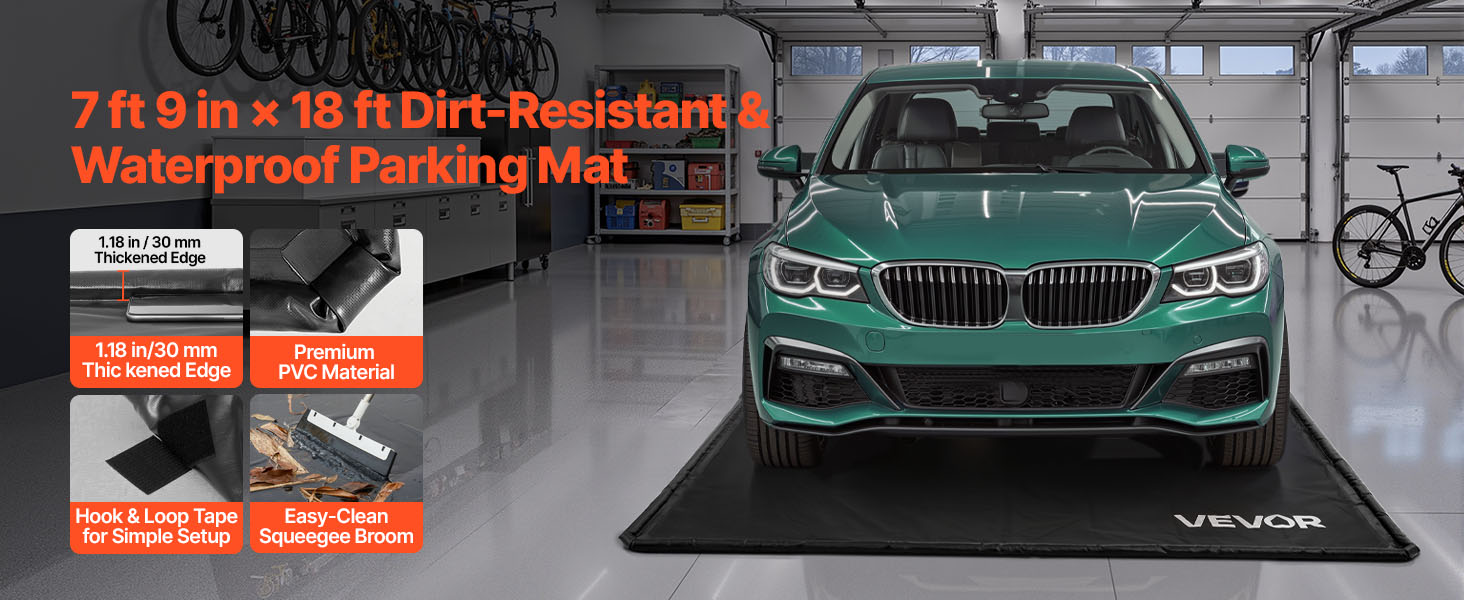 Táto rohož s rozmermi 7 ft 9 in x 18 ft, vyrobená z prvotriedneho PVC, je vhodná pre rôzne vozidlá a garážové priestory. Jej dizajn so zvýšeným okrajom účinne zabraňuje rozlievaniu kvapalín a udržiava podlahu garáže čistú. Ľahko sa inštaluje a čistí, vďaka čomu udržiava vašu garáž vždy čistú.
