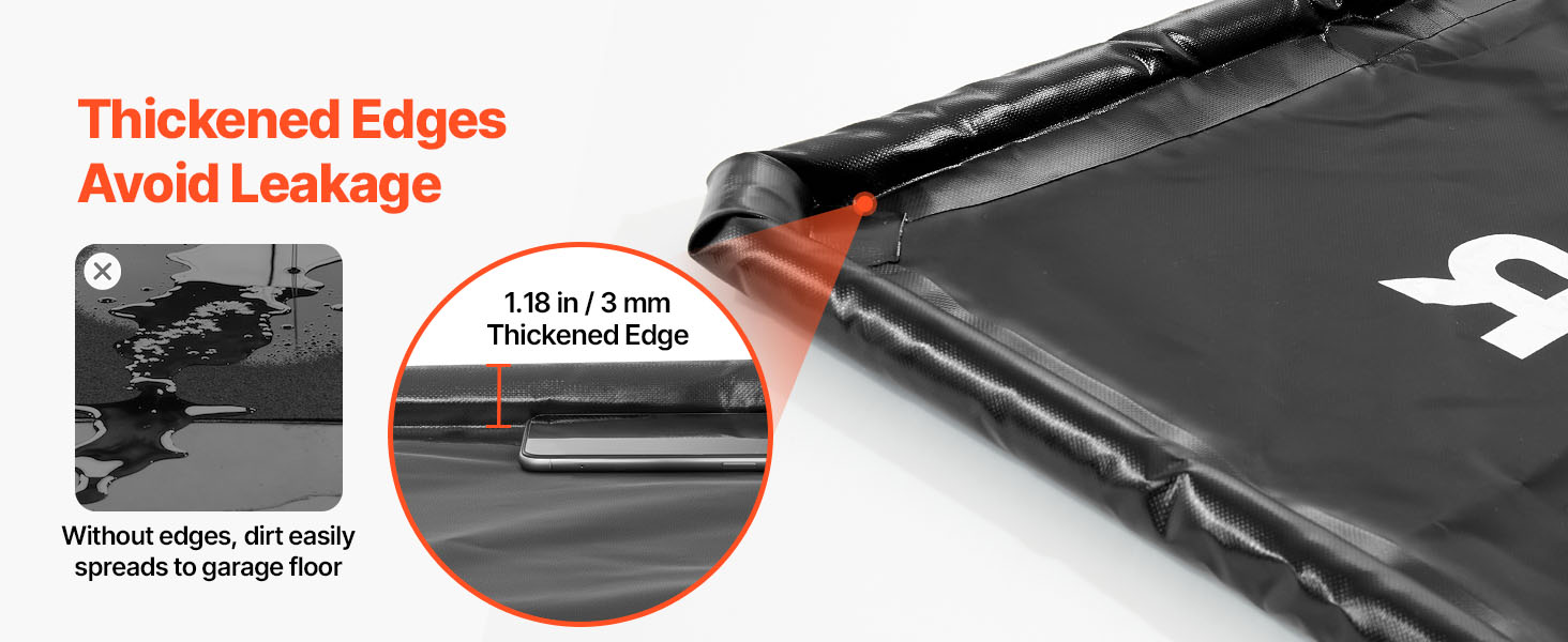 Vďaka zvýšenému okraju s hrúbkou až 1,18 palca táto rohož na zadržiavanie kvapalín na podlahe garáže zabraňuje rozlievaniu kvapalín. Zabezpečuje, že podlaha garáže zostane suchá a čistá. Táto konštrukcia rieši problém úniku kvapaliny, ktorý je bežný pri tradičných rohožiach, a chráni podlahu vašej garáže pred olejovými a vodnými škvrnami.