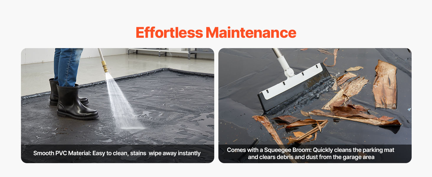 Povrch rohože na zadržiavanie vody je hladký, vďaka čomu sa ľahko čistí a škvrny sa z neho bez námahy stierajú. Dodáva sa so stieracím zmetákom, ktorý rýchlo vyčistí parkovaciu rohož a odstráni nečistoty a prach z priestoru garáže, čím vyrieši časovo a pracovne náročný problém.