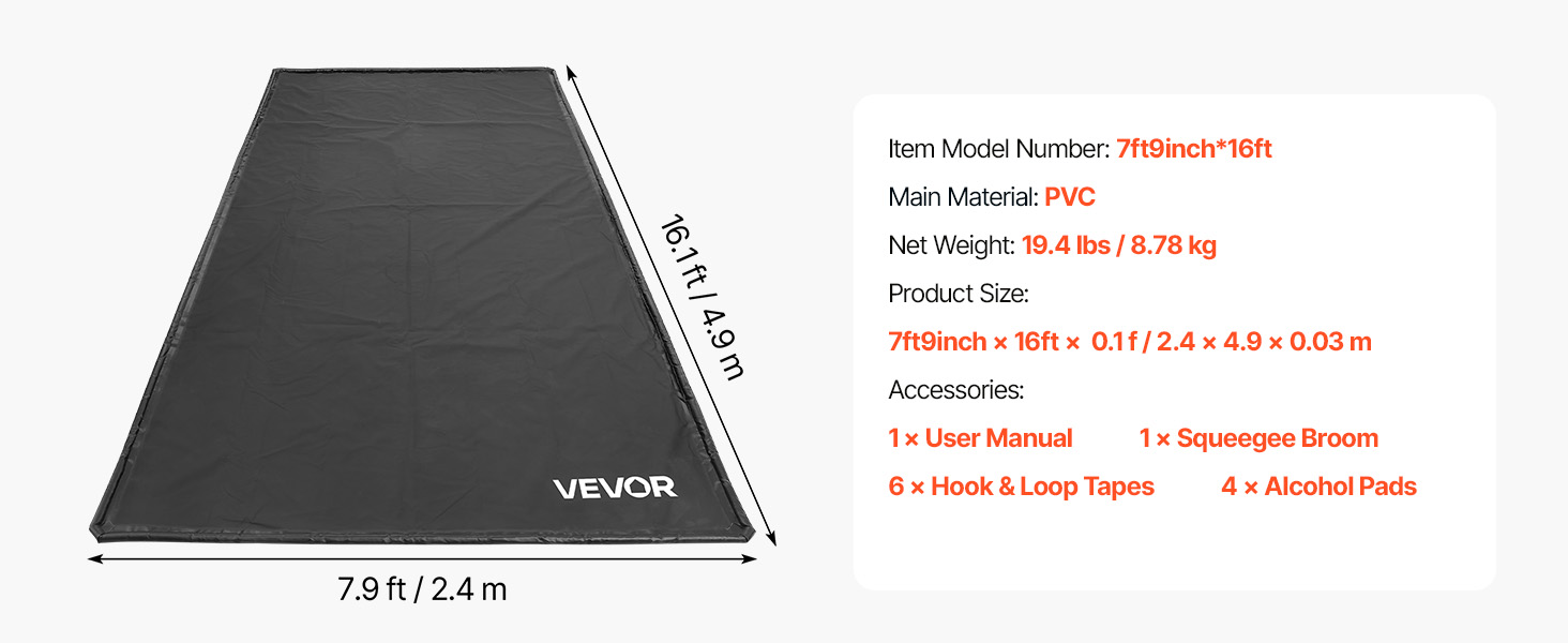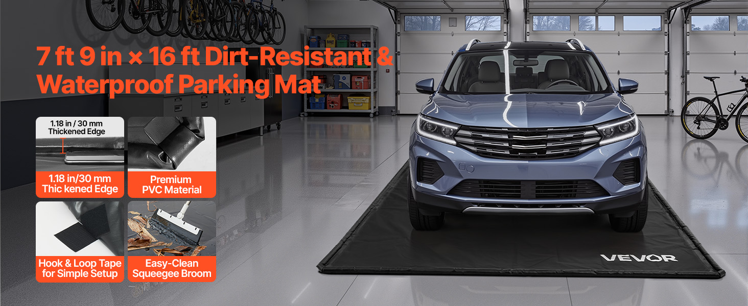 Táto rohož s rozmermi 7 ft 9 in x 16 ft, vyrobená z prvotriedneho PVC, je vhodná pre rôzne vozidlá a garážové priestory. Jej dizajn so zvýšeným okrajom účinne zabraňuje rozlievaniu kvapalín a udržiava podlahu garáže čistú. Ľahko sa inštaluje a čistí, vďaka čomu udržiava vašu garáž vždy čistú.