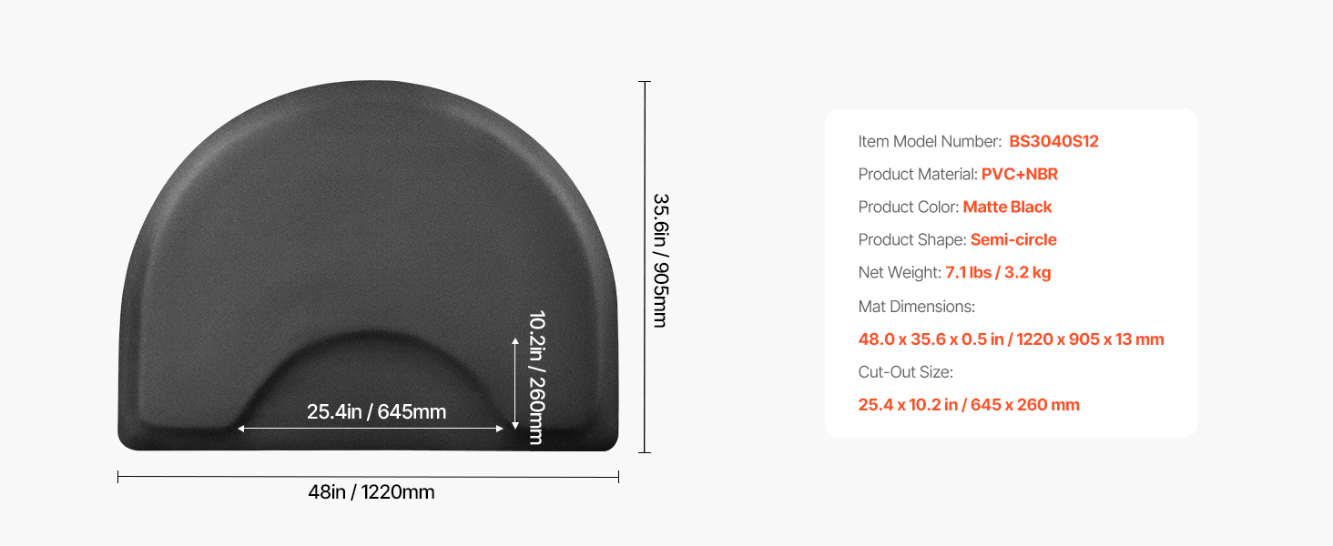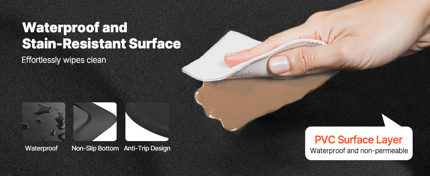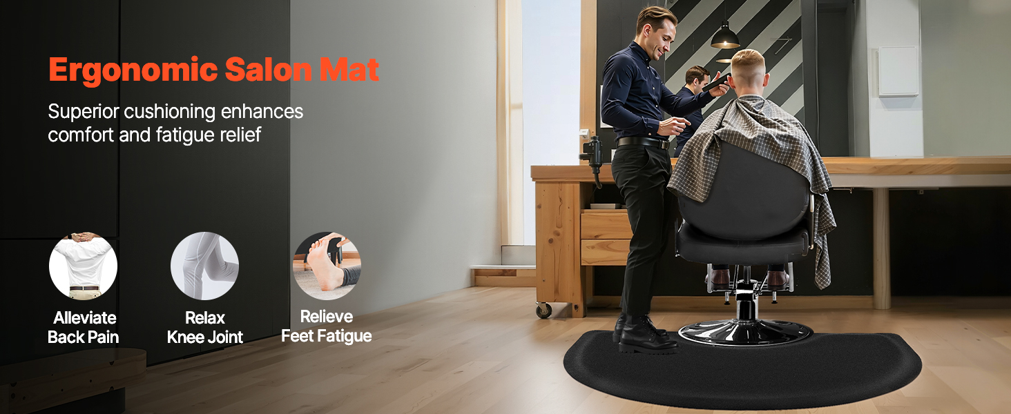 Podložka do salónu VEVOR s rozmermi 1220 x 905 mm je navrhnutá tak, aby poskytovala vynikajúce pohodlie a úľavu od únavy, zmierňovala bolesti chrbta, uvoľňovala kolenné kĺby a zmierňovala únavu nôh, čím zvyšuje vaše celkové pracovné pohodlie a efektivitu. Je odolná proti prepichnutiu a zvlneniu, zabraňuje pošmyknutiu, je odolná a ľahko sa čistí.