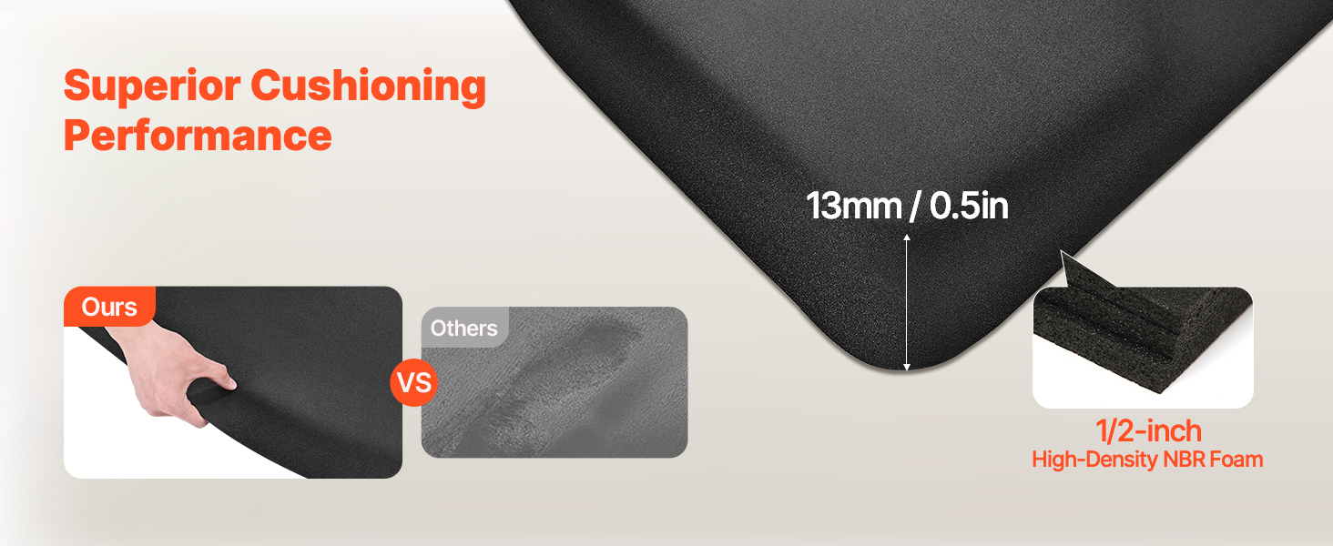 Táto rohož do kaderníctva je vyplnená 13 mm hrubou penou NBR, ktorá ponúka vynikajúcu oporu a vankúš, ktorý pomáha zmierniť tlak pri dlhšom státí. Znižuje únavu chodidiel, kolien, nôh a chrbta a poskytuje pohodlie počas celého pracovného dňa.