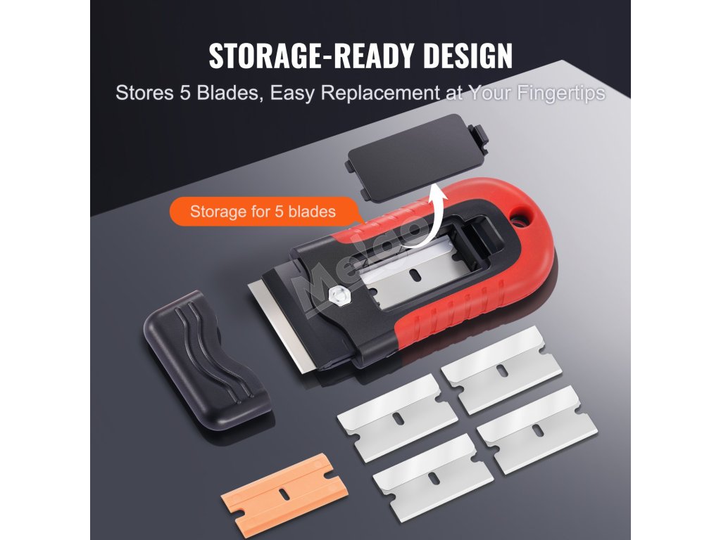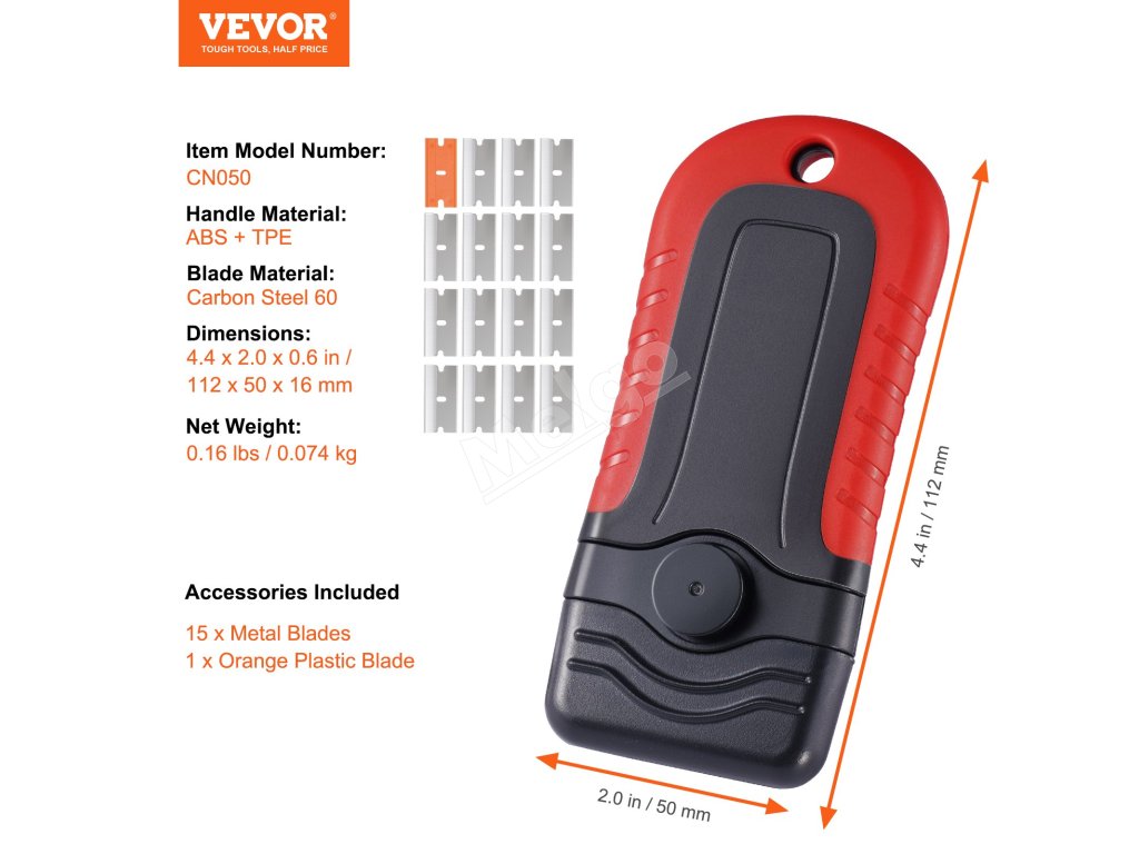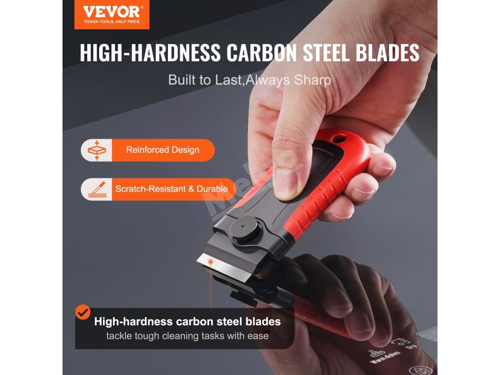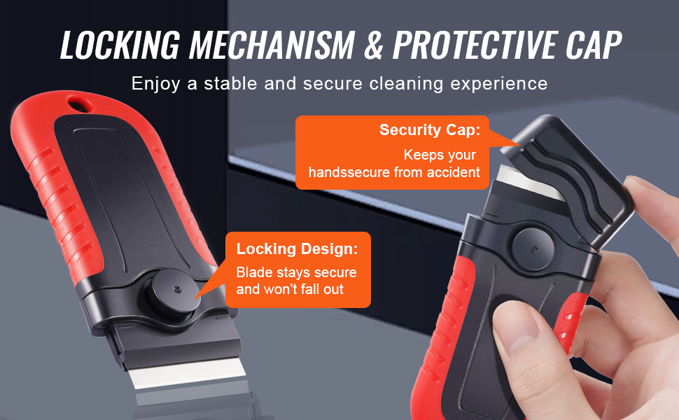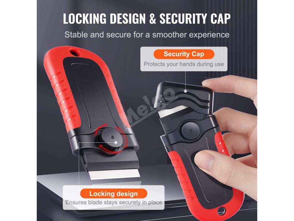 VEVOR vyriešil problém používateľov, ktorí sa obávajú nestability čepele a rizika jej vypadnutia počas používania. Naša čepeľ je zaistená skrutkou, ktorá zlepšuje stabilitu o 80 % v porovnaní so škrabkou s tlačnou čepeľou. Bezpečnostný uzáver chráni vaše ruky po použití.