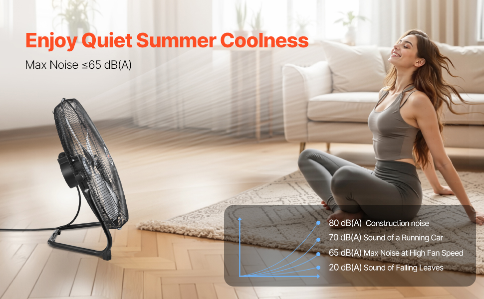 Vysokorýchlostný priemyselný podlahový ventilátor ponúka prietok vzduchu 4000 CFM a dosah 29,53 ft. S hlučnosťou ≤65 dB(A) je ideálny na letné chladenie s bielym šumom. Je vybavený 18-palcovými hliníkovými lopatkami a mriežkou odolnou proti korózii, má nastaviteľný sklon o 360° a vstavanú rukoväť pre ľahké presúvanie, ideálny pre všetky príležitosti.