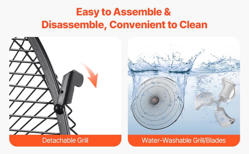 Náš univerzálny kovový ventilátor je dodávaný v predmontovanom stave. Stačí pripojiť základňu a je pripravený na použitie. Pravidelné rozobratie a čistenie je jednoduché a naša používateľská príručka obsahuje podrobné pokyny. Časti sa dajú ľahko odstrániť na dôkladné čistenie, čím sa zabráni hromadeniu prachu a zabezpečí optimálny prietok vzduchu.