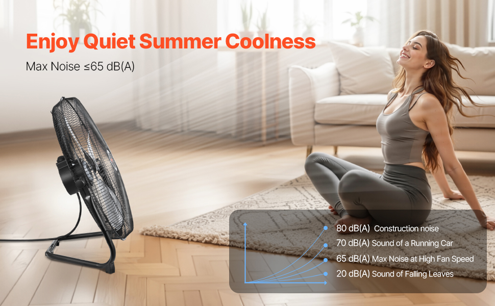 Tento vysokorýchlostný priemyselný podlahový ventilátor ponúka prietok vzduchu 4800 CFM a výtlak vzduchu 22,97 ft. S hlučnosťou ≤65 dB(A) poskytuje chladenie bez hluku. Je vybavený 20-palcovými hliníkovými lopatkami a antikorovou mriežkou, má 360° nastaviteľný sklon, zabudovanú rukoväť a dizajn na montáž na stenu, ideálny na všetky príležitosti.