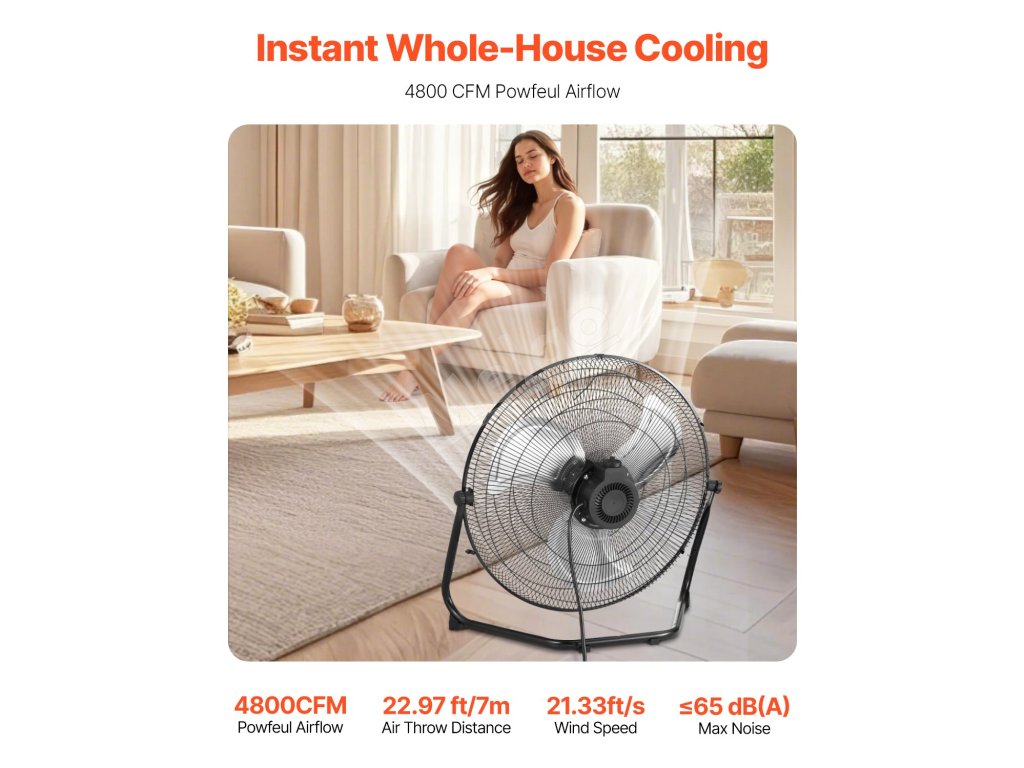 Tento vysokorýchlostný priemyselný podlahový ventilátor 2-PCS ponúka prietok vzduchu 4800 CFM a výšku výtlaku 22,97 ft. S hlučnosťou ≤65 dB(A) poskytuje chladenie bez hluku. Je vybavený 20-palcovými hliníkovými lopatkami & antikorovou mriežkou, má 360° nastaviteľný sklon, zabudovanú rukoväť a dizajn na montáž na stenu, ideálny na všetky príležitosti.