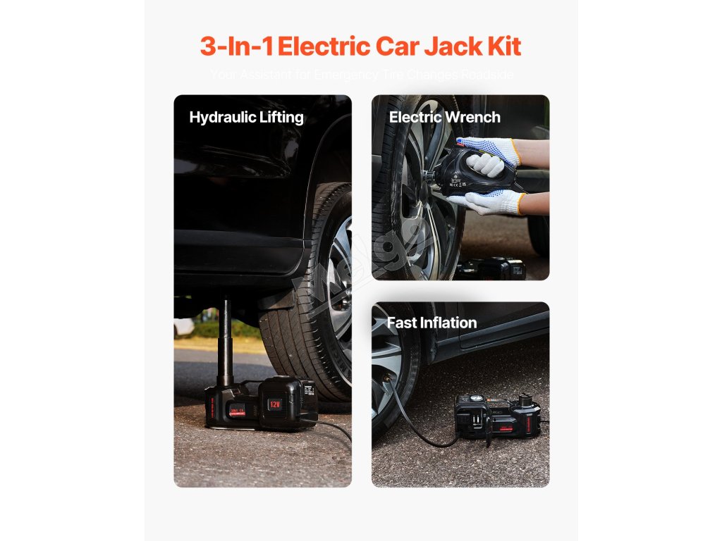 Elektrický zdvihák 5 tons /11000 lbs 12V, inflátor a rázový kľúč