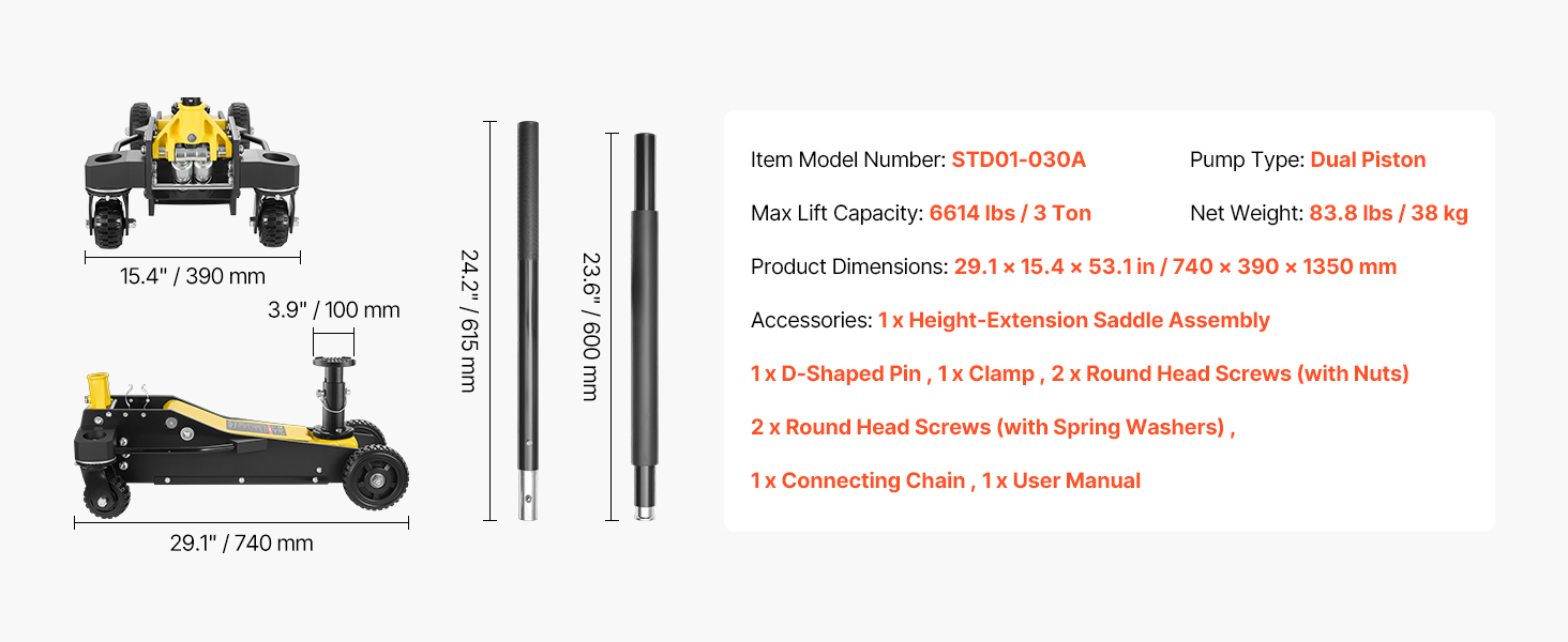 Predĺžená rukoväť tohto vysokozdvižného zdviháka znižuje námahu pri pumpovaní a zaisťuje plynulejšiu prevádzku. Na zdvihnutie utiahnite uvoľňovací ventil a na spustenie otočte rukoväť proti smeru hodinových ručičiek. Jednoduché ovládanie uľahčuje prácu aj začiatočníkom.