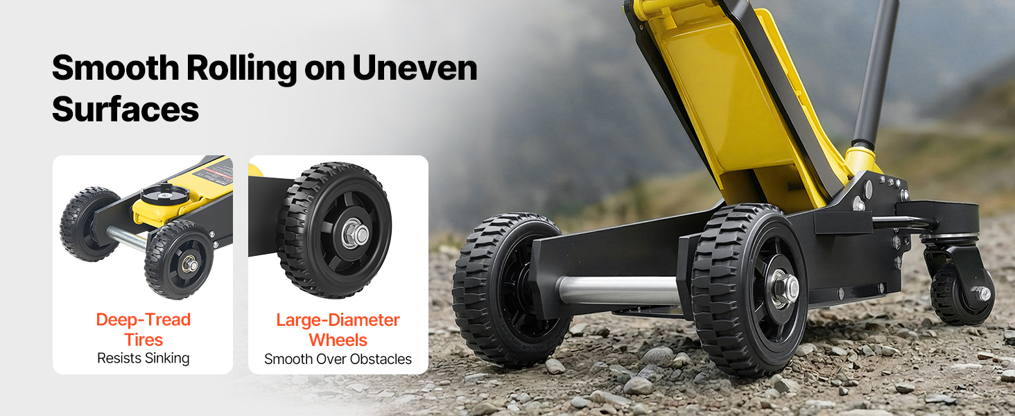 Tento hydraulický podlahový zdvihák je vybavený veľkými kolieskami pre plynulý pohyb. Ľahko sa pohybuje po vonkajších kamenných chodníkoch alebo štrkových cestách. Umiestnenie pod vozidlo vyžaduje menej námahy.