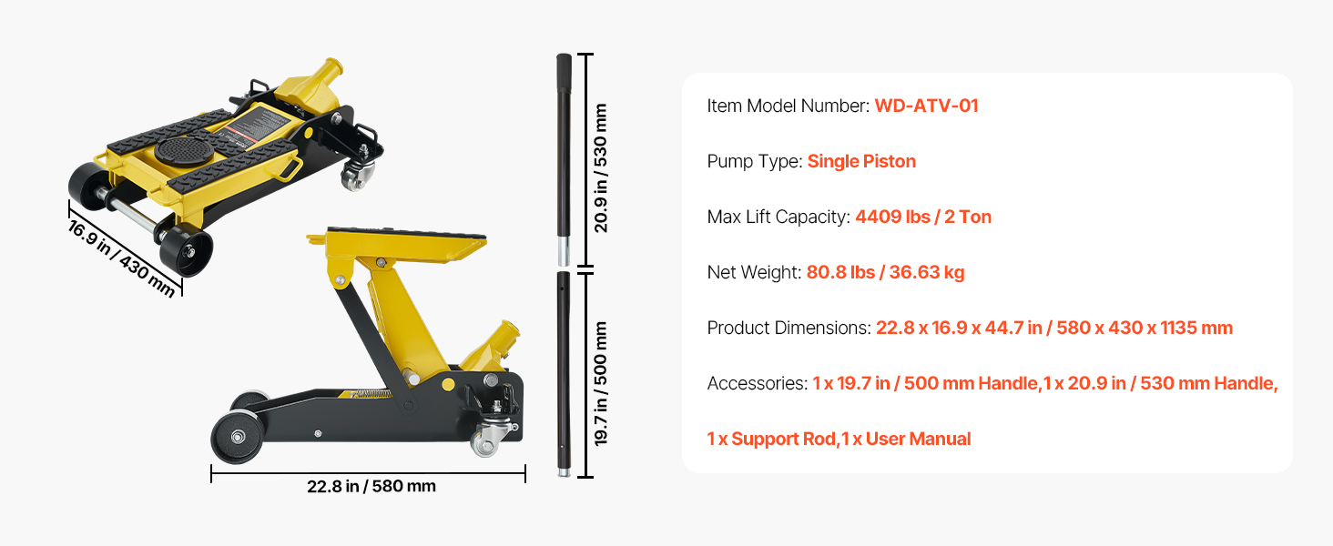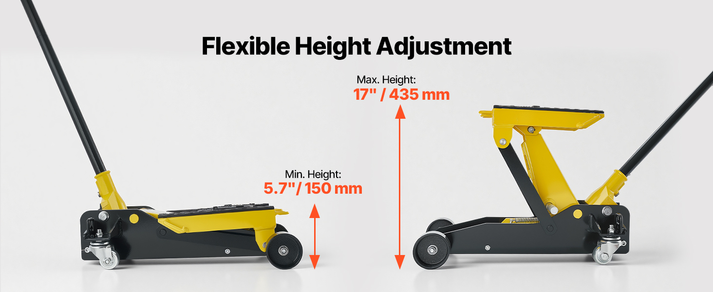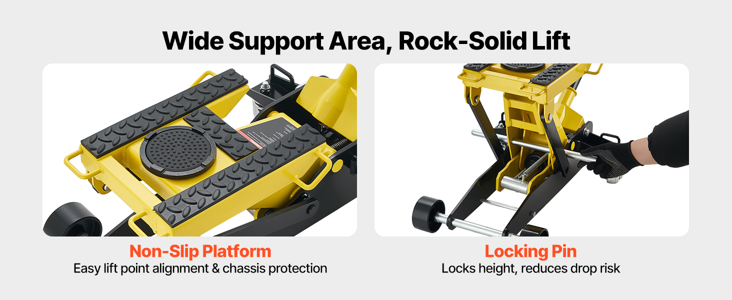 Náš podlahový zdvihák sa hladko pumpuje a poskytuje široký rozsah zdvihu. Ľahko sa zasúva pod vozidlá a zdvíha ich vyššie pre pohodlné opravy a údržbu.