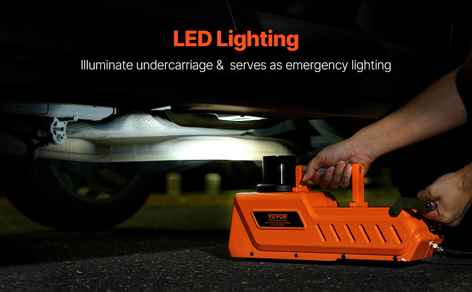 Táto súprava elektrického zdviháka na auto, vybavená jasnými LED svetlami, zaručuje, že ľahko uvidíte spodnú časť svojho vozidla, a to aj za zhoršených svetelných podmienok. Pomôže vám lokalizovať správne body zdvíhania a zdvojnásobí sa ako núdzové svetlo počas nočných opráv pneumatík.