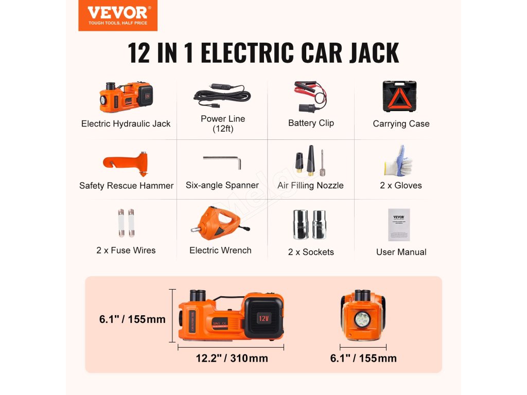 Elektrický hydraulický zdvihák 5 t, 12 V, rázový kľúč a pumpa
