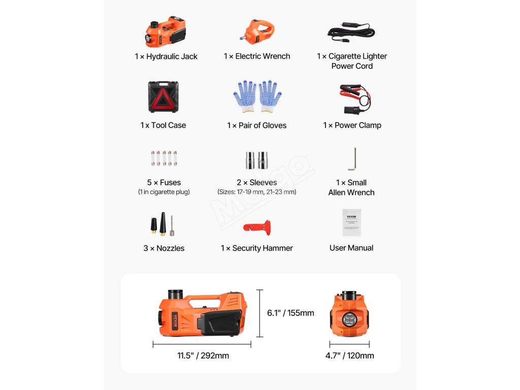 Elektrický zdvihák 5 tons /11000 lbs 12v s inflátorom a ráz. kľúčom