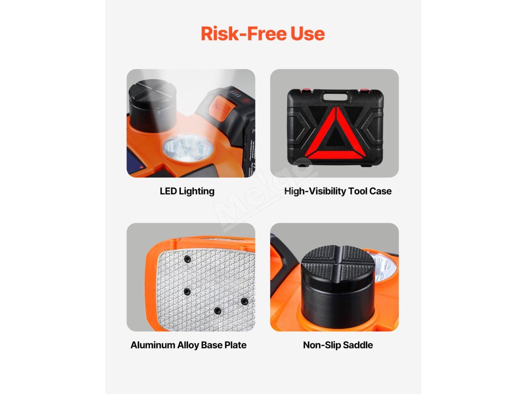 Náš elektrický zdvihák má na hornej hlave dizajn s krížovými drážkami, ktorý zabraňuje skĺznutiu a zabezpečuje bezpečné zdvihnutie vášho vozidla. Táto konštrukcia poskytuje väčšiu stabilitu, vďaka čomu je zdvíhanie vozidla jednoduchšie a bezpečnejšie bez obáv z pošmyknutia alebo nehody.