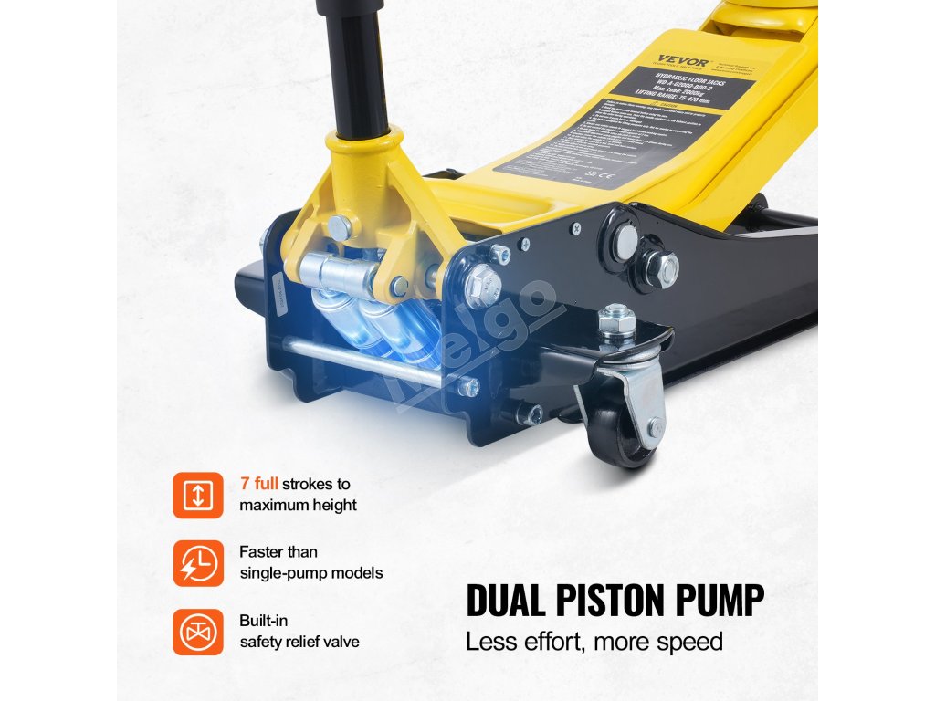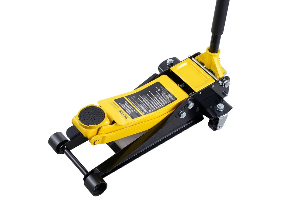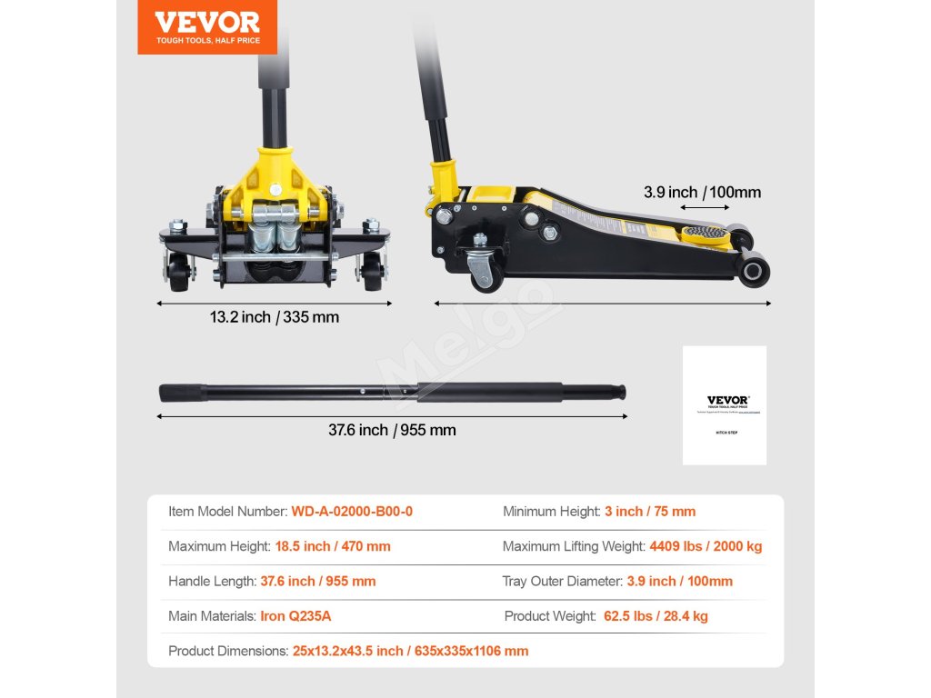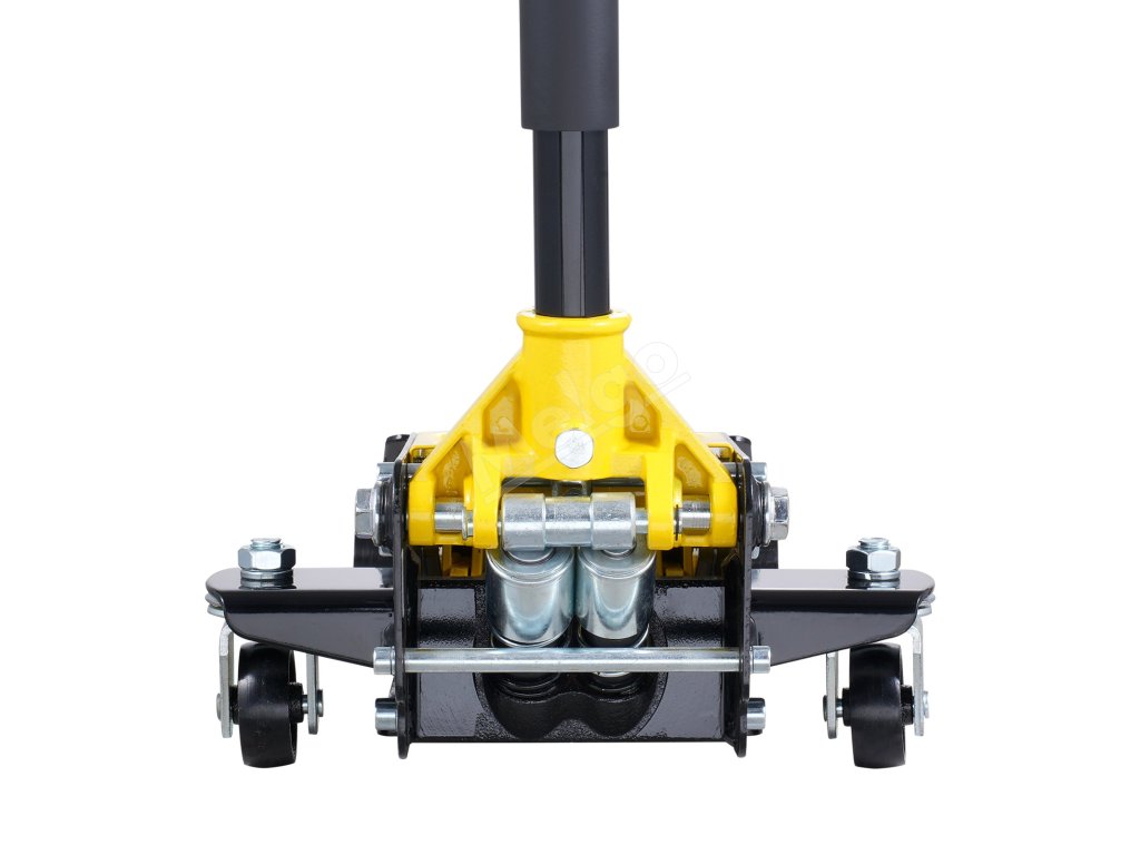 Vybavený veľkým gumovým sedlom, ktoré pomáha chrániť vaše vozidlo; veľké predné kolesá a otočné kolieska umožňujú rýchly a jednoduchý presun a prepravu zdviháka; rukoväť je odnímateľná.