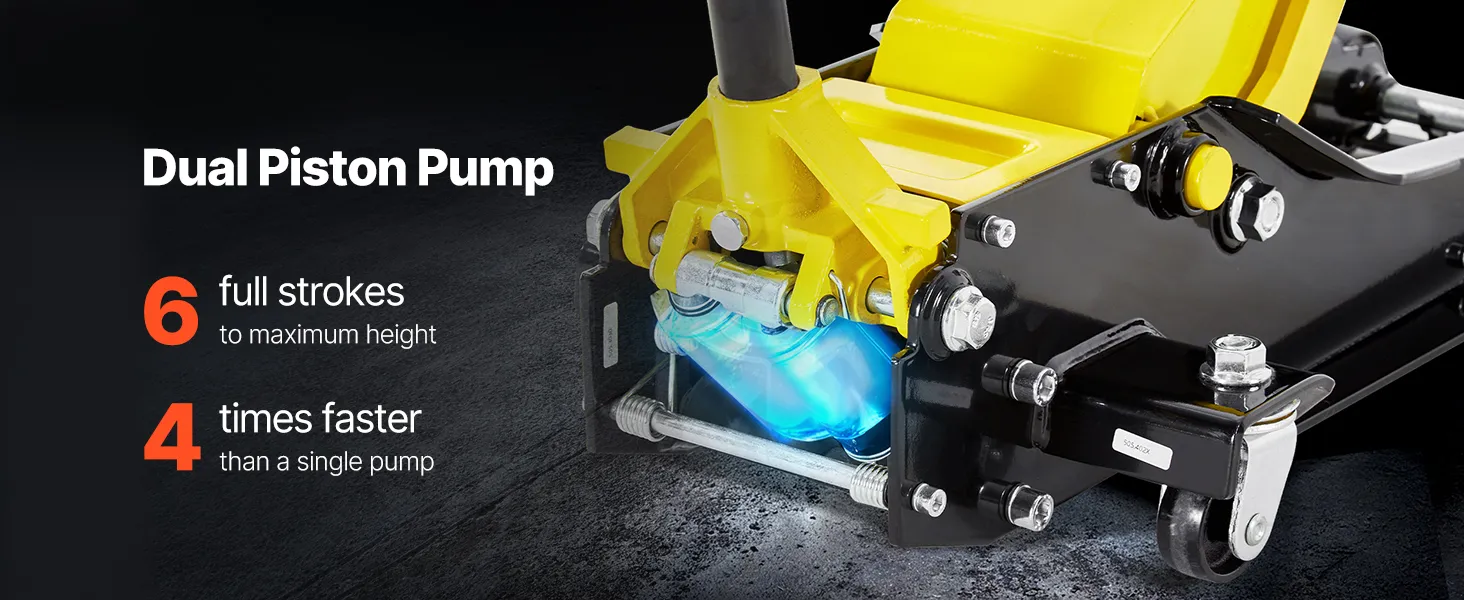 Zosilnené, utesnené hydraulické čerpadlo minimalizuje únik oleja, čím zabezpečuje bezpečné a spoľahlivé zdvíhanie pomocou podlahového zdviháka.