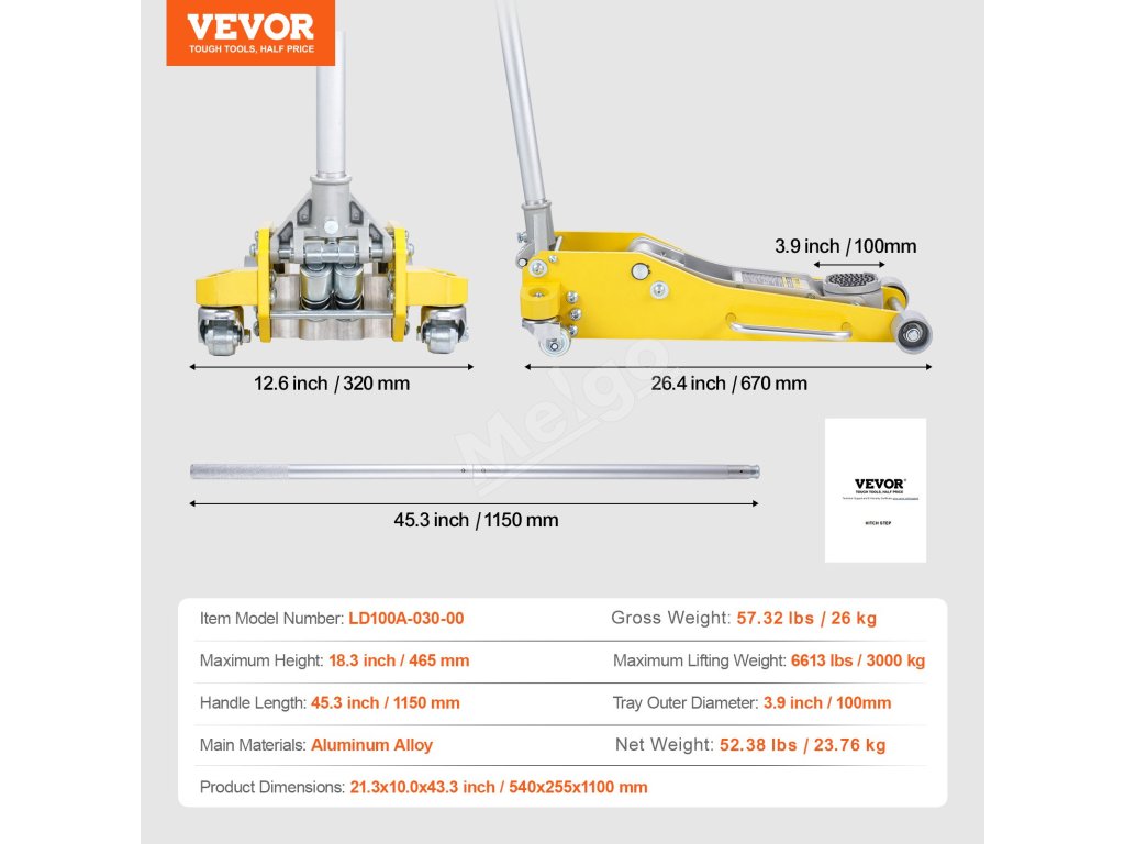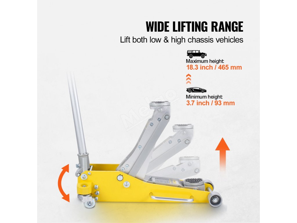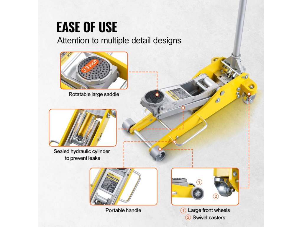 Podlahový hydraulický zdvihák dokáže zdvihnúť vozidlá s hmotnosťou až 3 tony, takže je vhodný pre bežne používané sedany a SUV, čím zjednodušuje opravárenské práce na autách s menším stresom.