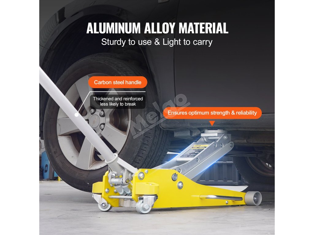 Je vyrobený z vysokopevnostného hliníka, vďaka čomu je podlahový zdvihák spoľahlivým a robustným nástrojom na pravidelné úlohy údržby a opravy automobilov. Tento materiál je ľahší a prenosnejší ako železo.