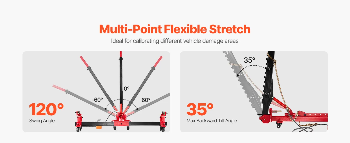 Stĺpik tohto sťahováka automobilových rámov možno nastaviť vo viacerých uhloch - vpredu, vzadu, vľavo a vpravo - čo umožňuje technikom presne nastaviť výšku a uhol zdvihu podľa konkrétnych potrieb vozidla.