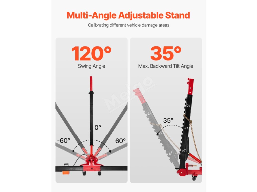 Stĺpik tohto sťahováka automobilových rámov možno nastaviť vo viacerých uhloch - vpredu, vzadu, vľavo a vpravo - čo umožňuje technikom presne nastaviť výšku a uhol zdvihu podľa konkrétnych potrieb vozidla.