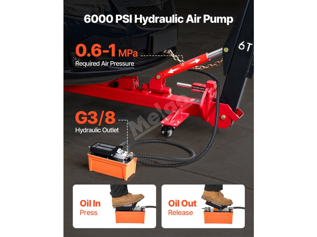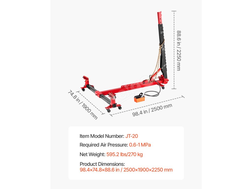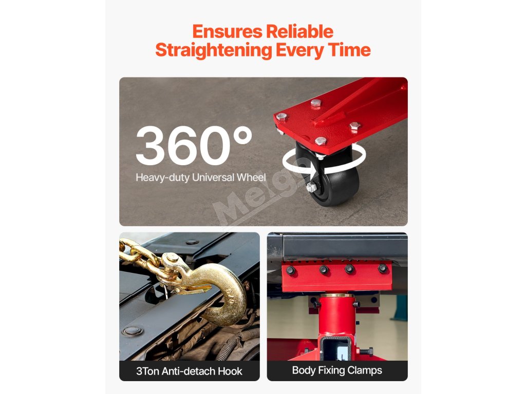 Tento vyťahovač rámov karosérií je vybavený vysokopevnostnou reťazou s dĺžkou 118 palcov / 3 m a 3-tonovým hákom proti odlepeniu. Maximálna ťahacia sila môže dosiahnuť až 6 ton, pričom sila ťahu sa zvyšuje s tým, ako sa reťaz ťahá smerom nadol.
