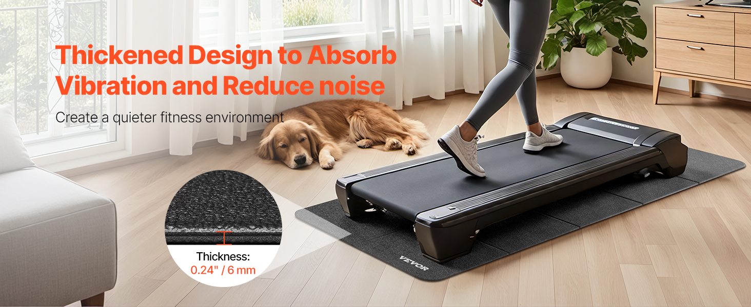 Podložka na chôdzu má hrúbku 0,24 palca / 6 mm, poskytuje vynikajúce tlmenie nárazov a redukciu hluku, čím vytvára tichšie prostredie na cvičenie.