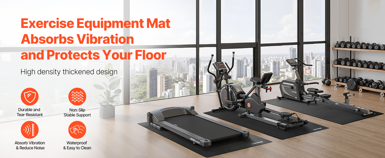 Táto podložka na cvičebné zariadenia poskytuje protišmykovú a stabilnú oporu, tlmí nárazy, znižuje hluk, je odolná voči vode a ľahko sa čistí, čím účinne chráni vaše podlahy a koberce.