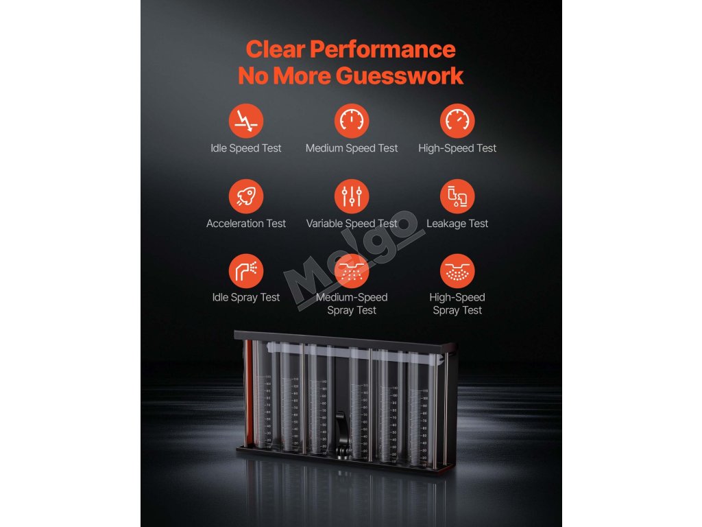 Testujte 6 vstrekovačov paliva súčasne. Náš čistič vstrekovačov vám umožňuje ľahko pozorovať atomizáciu, kvapkanie, upchávanie, uhol rozprašovania a rovnomernosť.