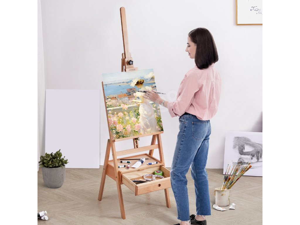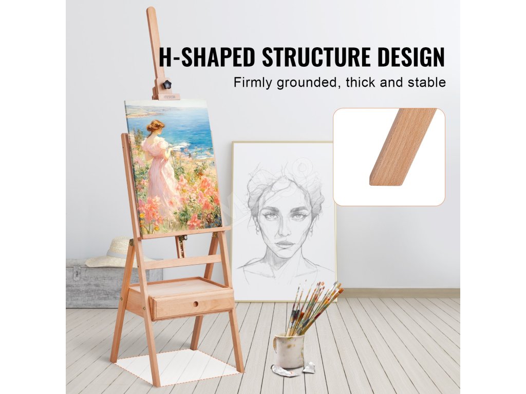 H-rámový maliarsky stojan nastaviteľný pre plátna do 91.4 cm bukový