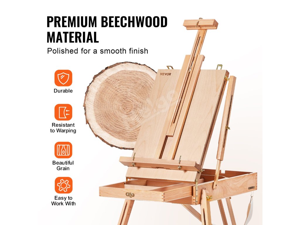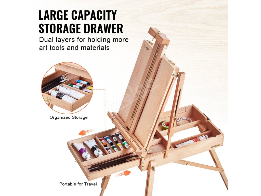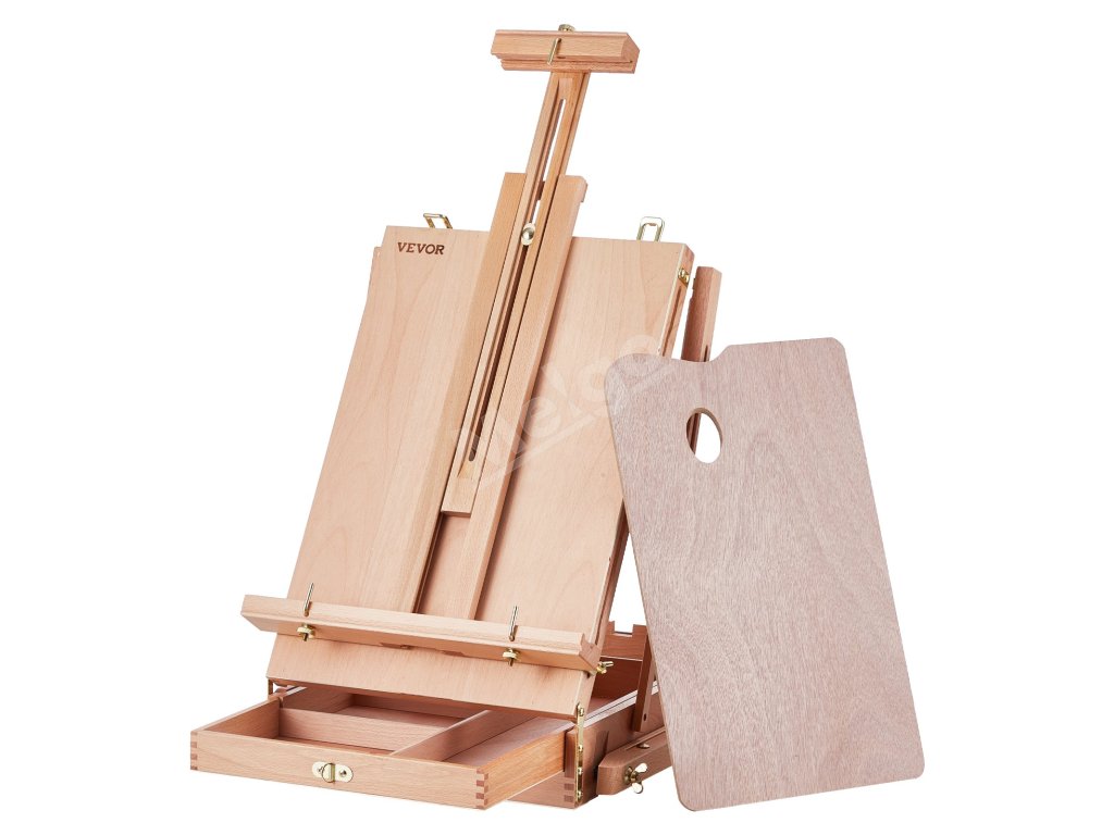 Maliarsky bukový skladací stojan, nastaviteľný, so šuflíkom, do 34"