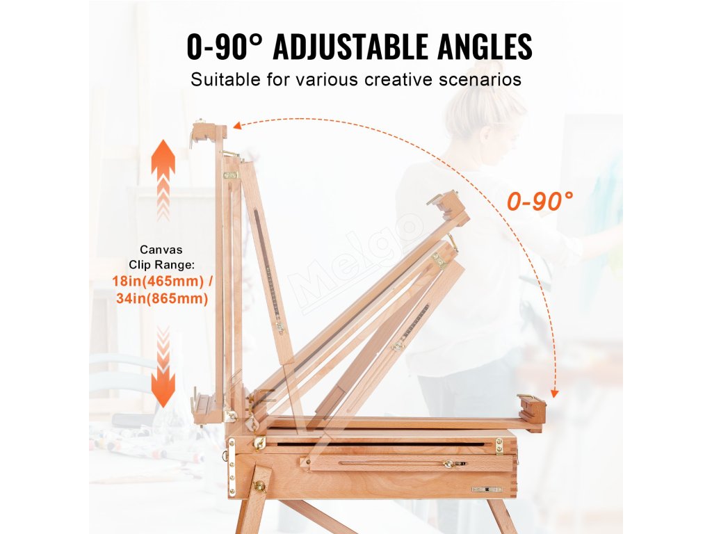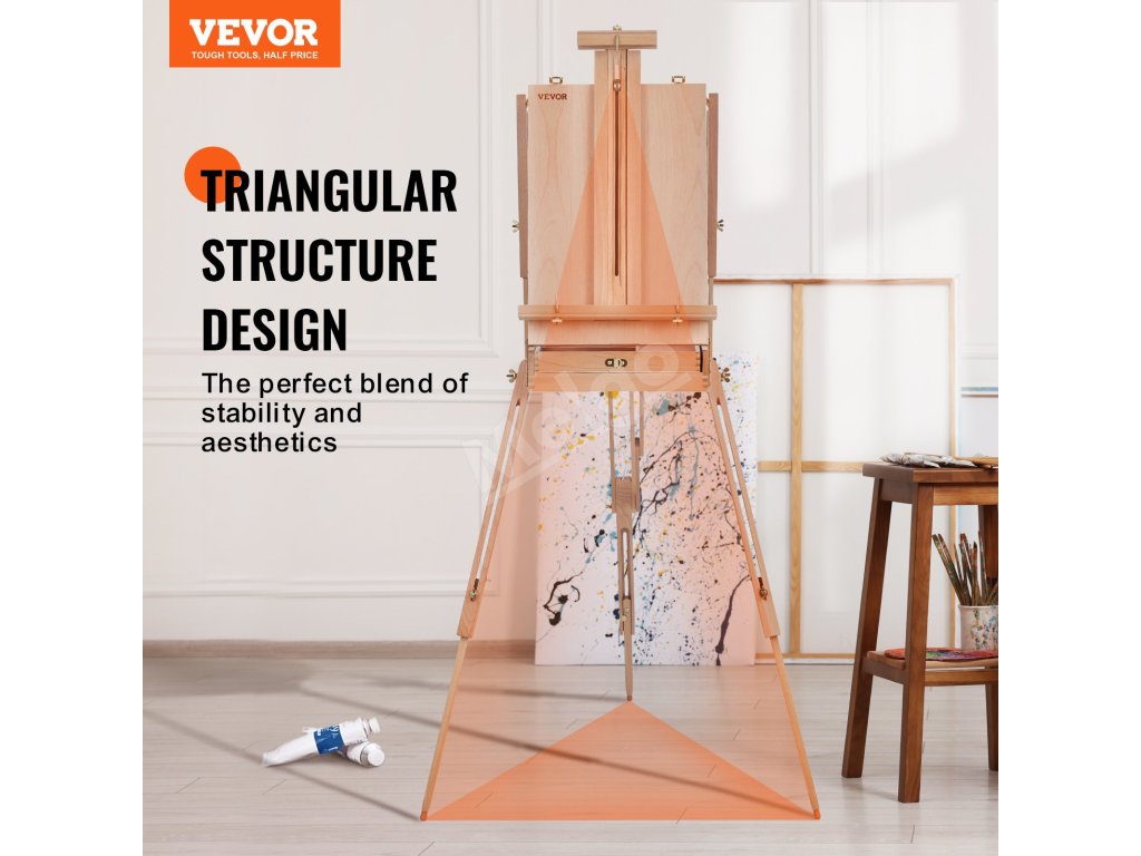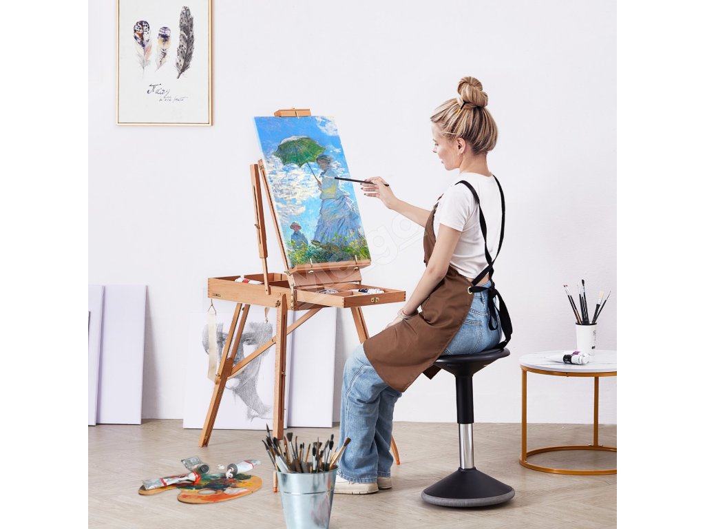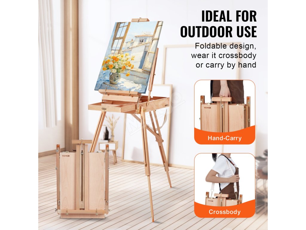 Či už ste v pokojnom interiérovom ateliéri alebo obklopení krásou prírody vonku, tento drevený maliarsky stojan sa bez námahy prispôsobí akémukoľvek prostrediu. Jeho prenosná konštrukcia vám umožní vziať si svoju tvorivosť kamkoľvek, vďaka čomu je možné tvoriť umenie bez hraníc.