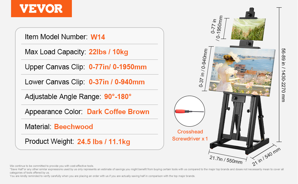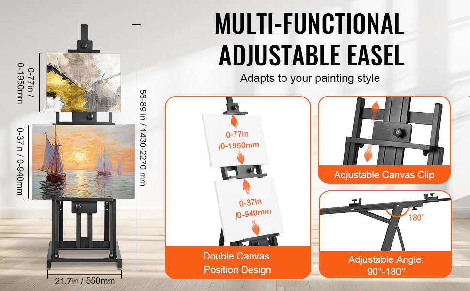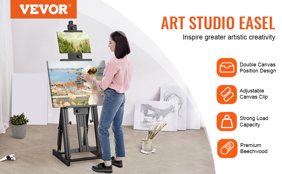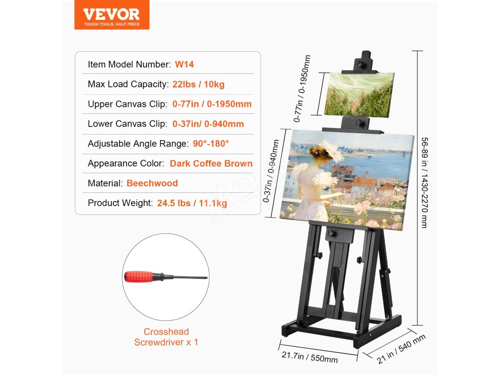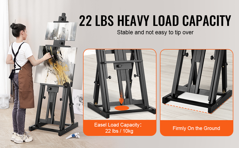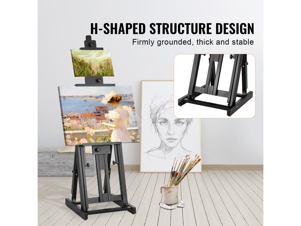 Tento stojan s rámom H na maľovanie unesie až 22 libier (10 kg). Jeho jedinečná konštrukcia so štyrmi nohami rovnomerne rozkladá hmotnosť a poskytuje stabilnú oporu pre plátna a nástroje.