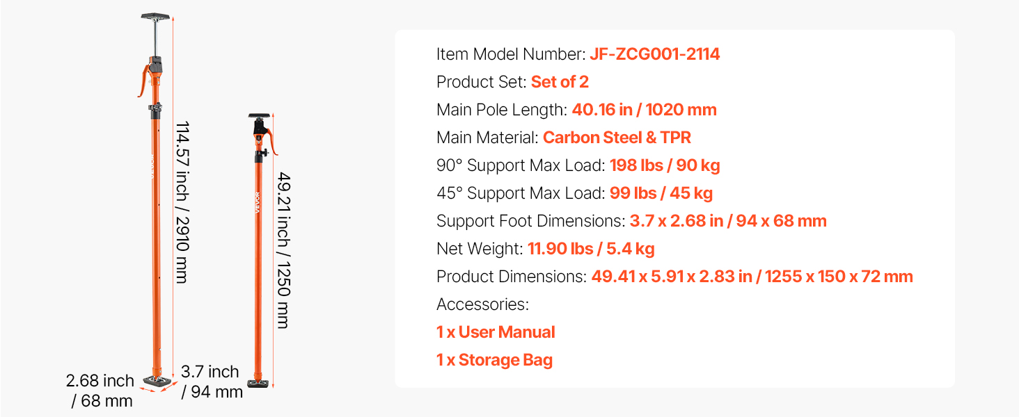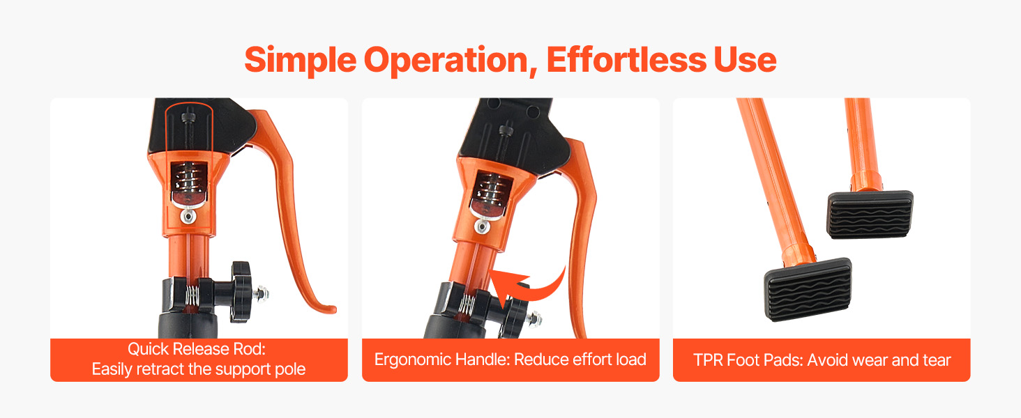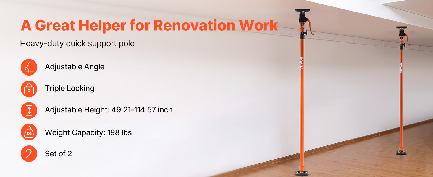 Táto súprava 2 ks podperných tyčí pre skrinky poskytuje účinnú podporu nákladu na staveniskách, v skladoch a pri domácich projektoch. S nosnosťou 198 libier, nastaviteľnou výškou a bezpečným uzamykateľným dizajnom je ideálna na zdvíhanie alebo pridržiavanie skríň, sadrokartónových dosiek a ďalších predmetov.