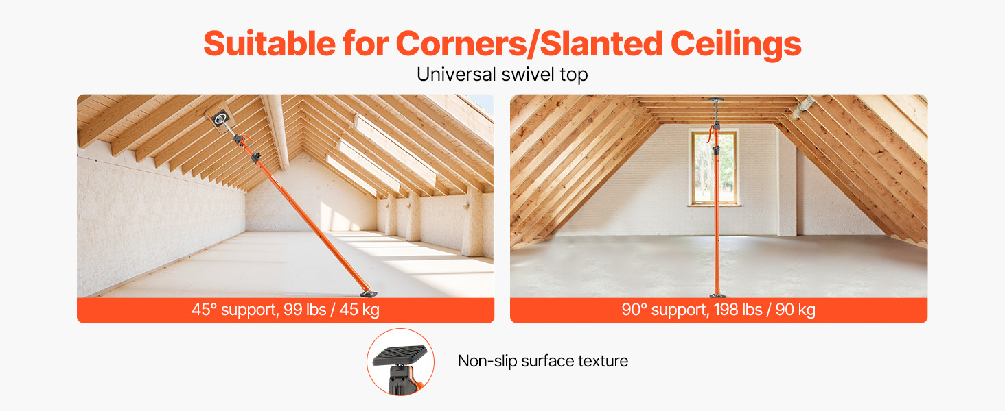 Podperná tyč je nastaviteľná v uhle 45° alebo 90° a stabilne drží aj v stiesnených alebo šikmých priestoroch. Vrchná časť s textúrou dodáva priľnavosť, aby sa zabránilo pošmyknutiu, čo je ideálne pre stropné inštalácie a šikmé svietidlá.